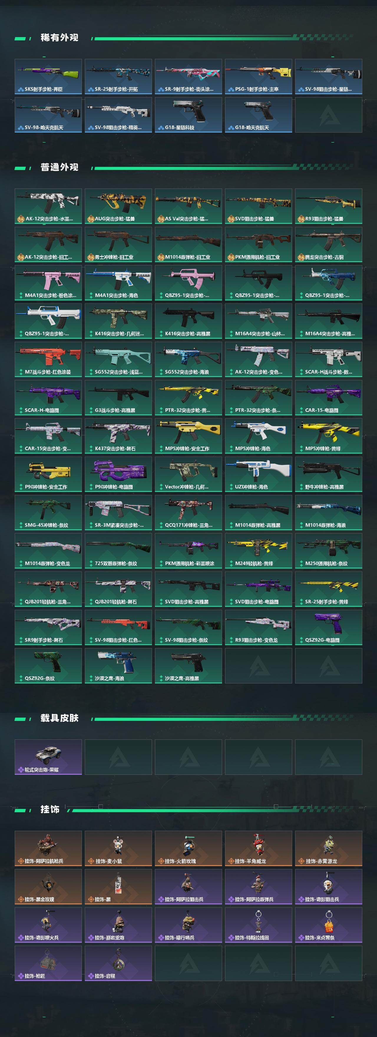 【传说外观】:M4A1突击步枪-蚀金玫瑰,M4A1突击步枪-阿米娅,SG552突击步枪-运动