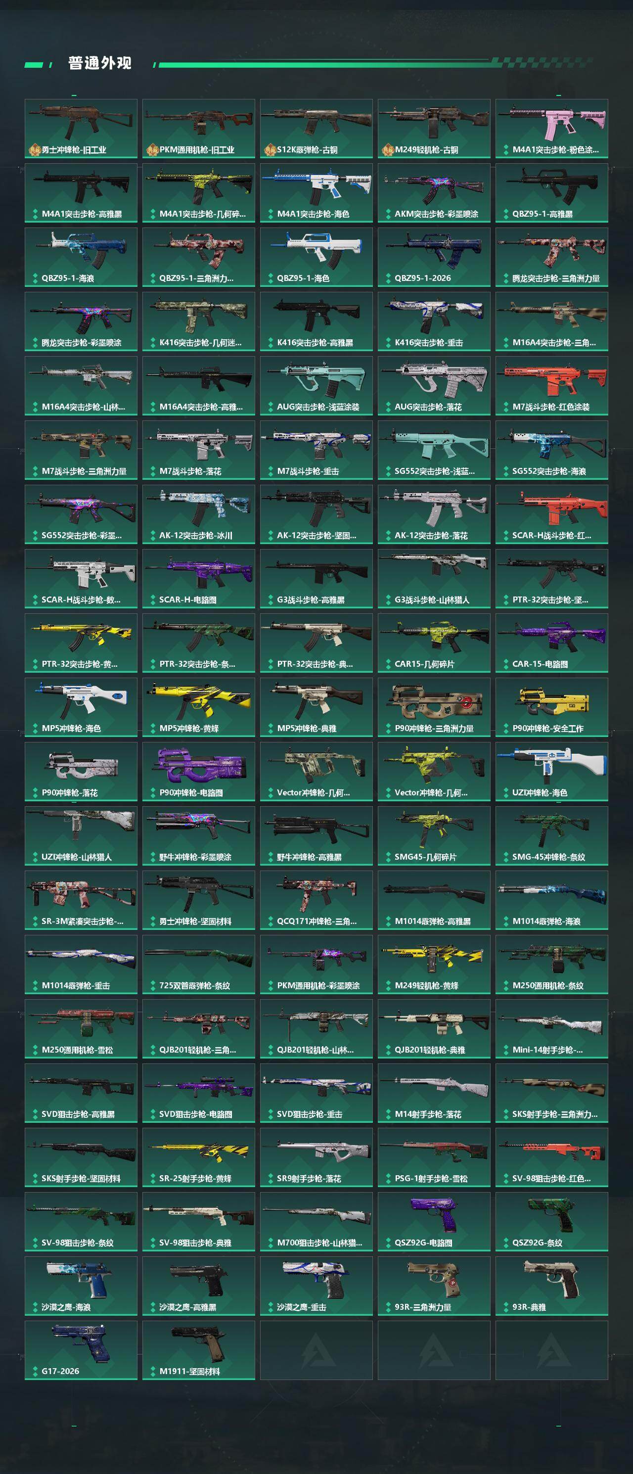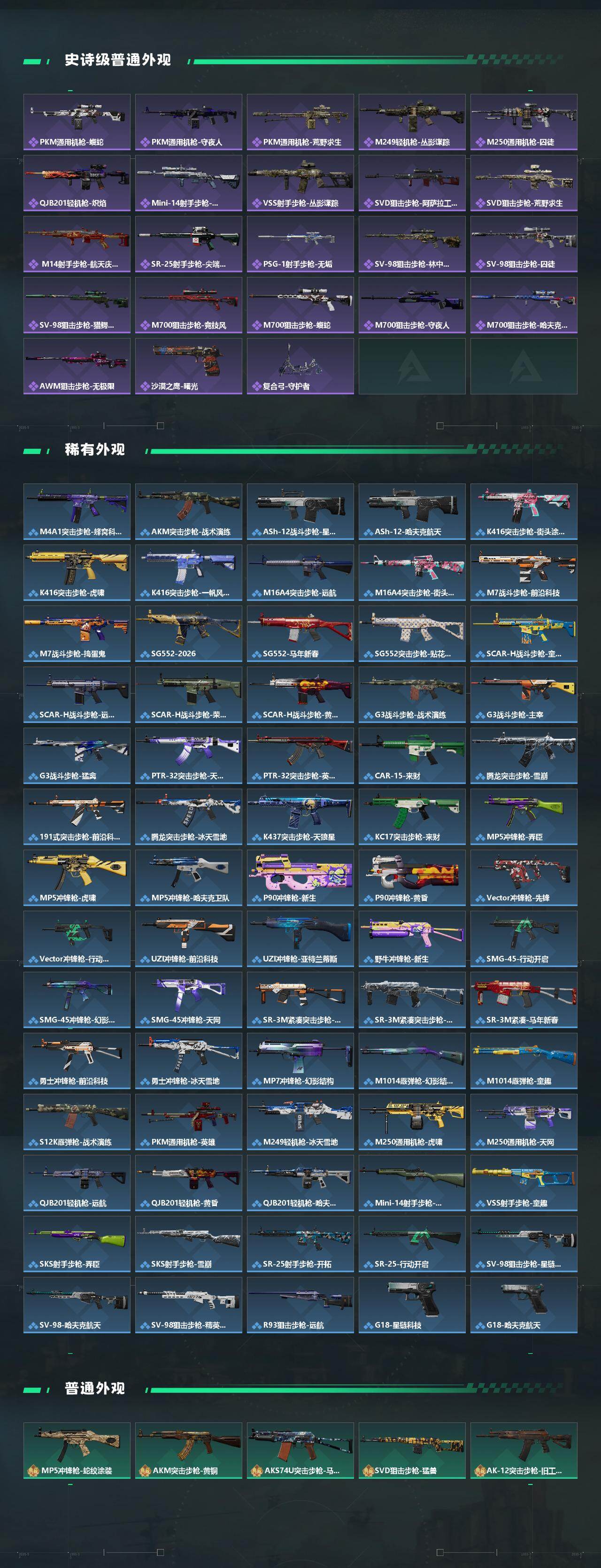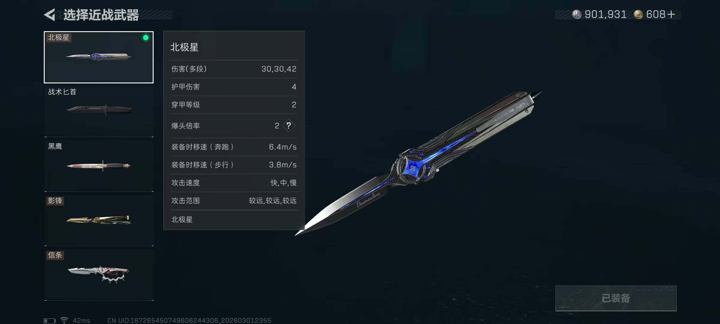 【近战皮肤】:近战-北极星,近战-信条,近战-影锋,近战-黑鹰