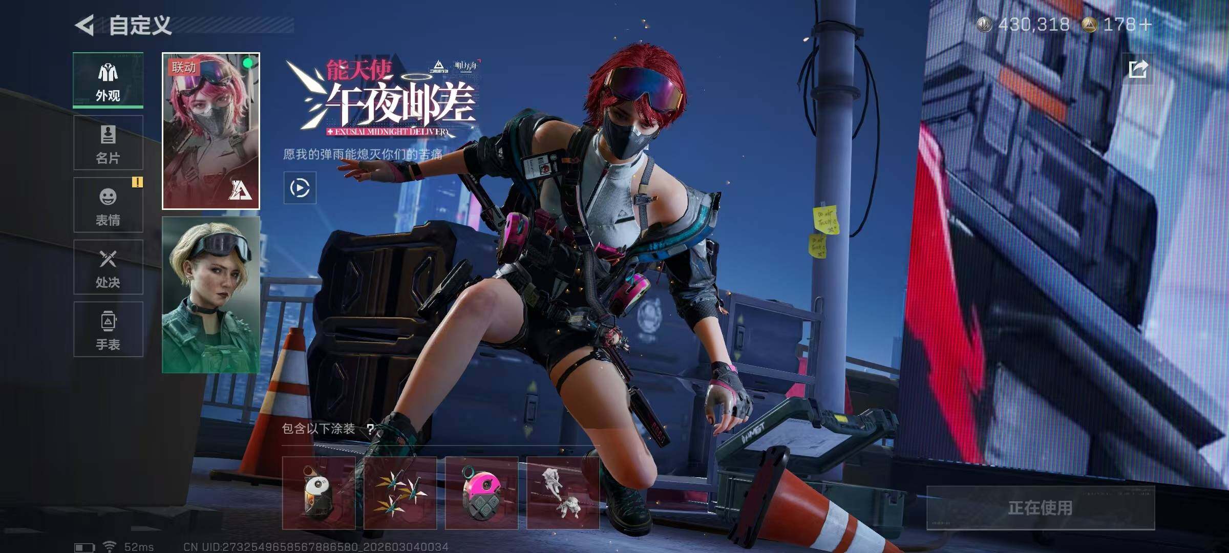 【干员外观】:露娜-黑·天际线,蛊-能天使午夜邮差,红狼-电锯惊魂,露娜-金牌射手