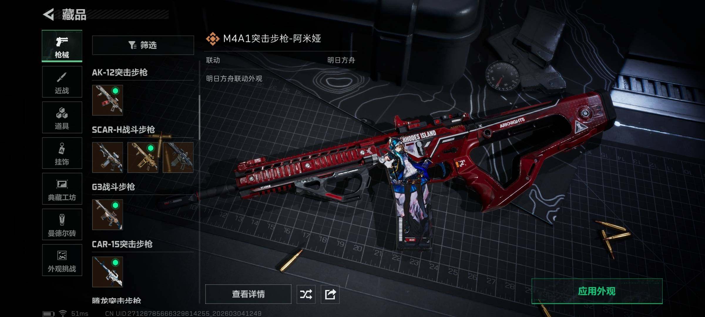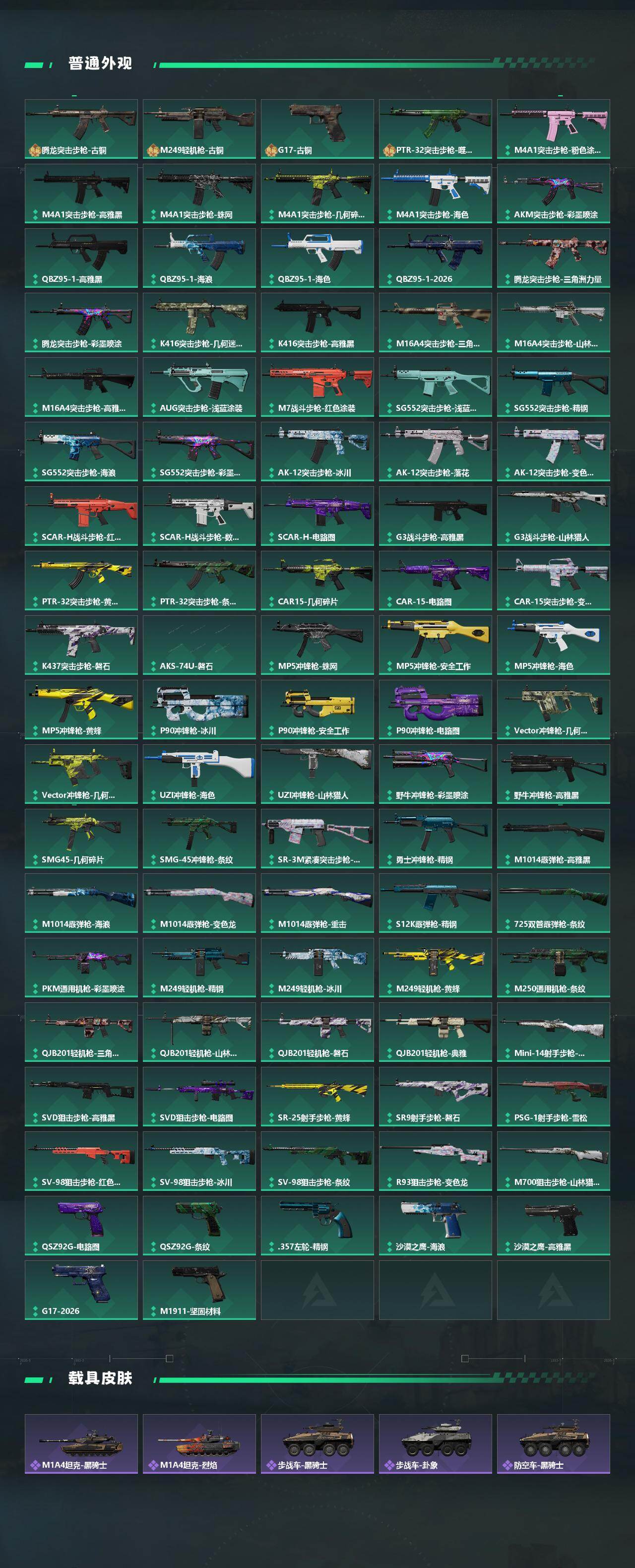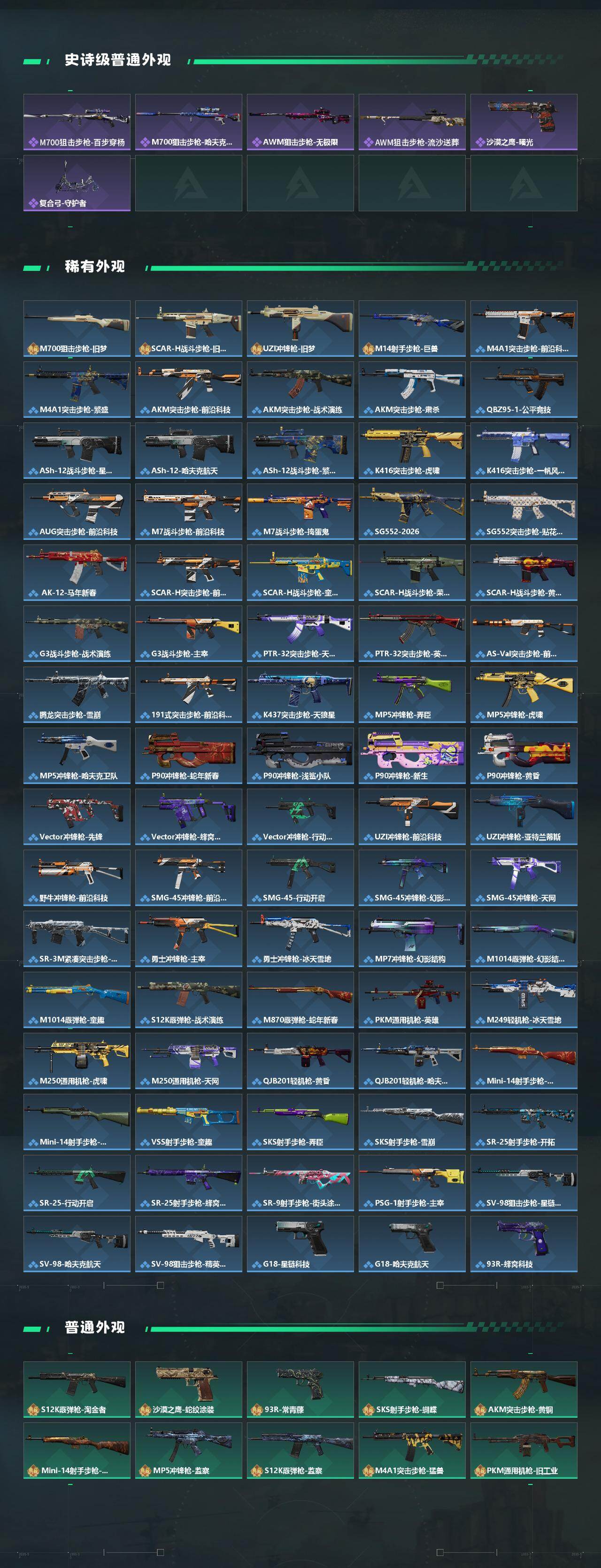 【传说外观】:M4A1突击步枪-蚀金玫瑰,M4A1突击步枪-阿米娅,AKM突击步枪-锦绣,ASh