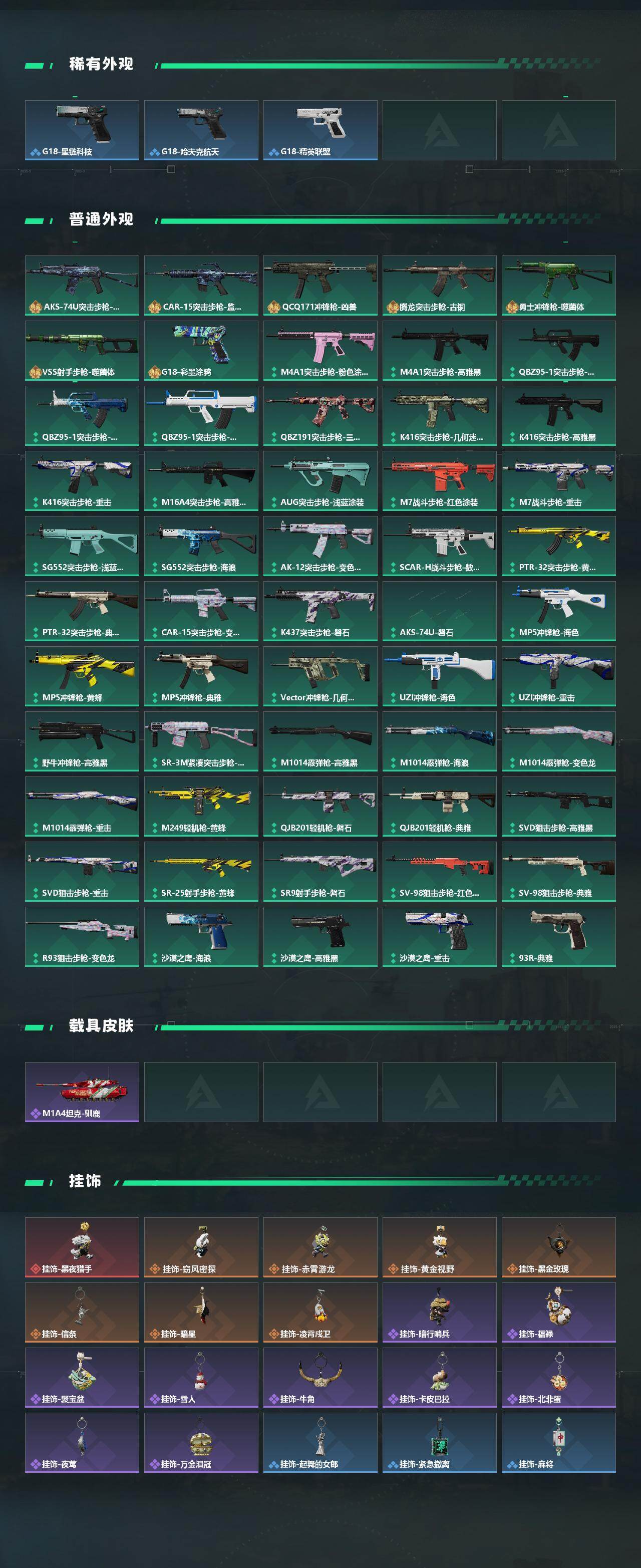 【近战皮肤】:近战-暗星,近战-信条,近战-龙牙,近战-黑鹰