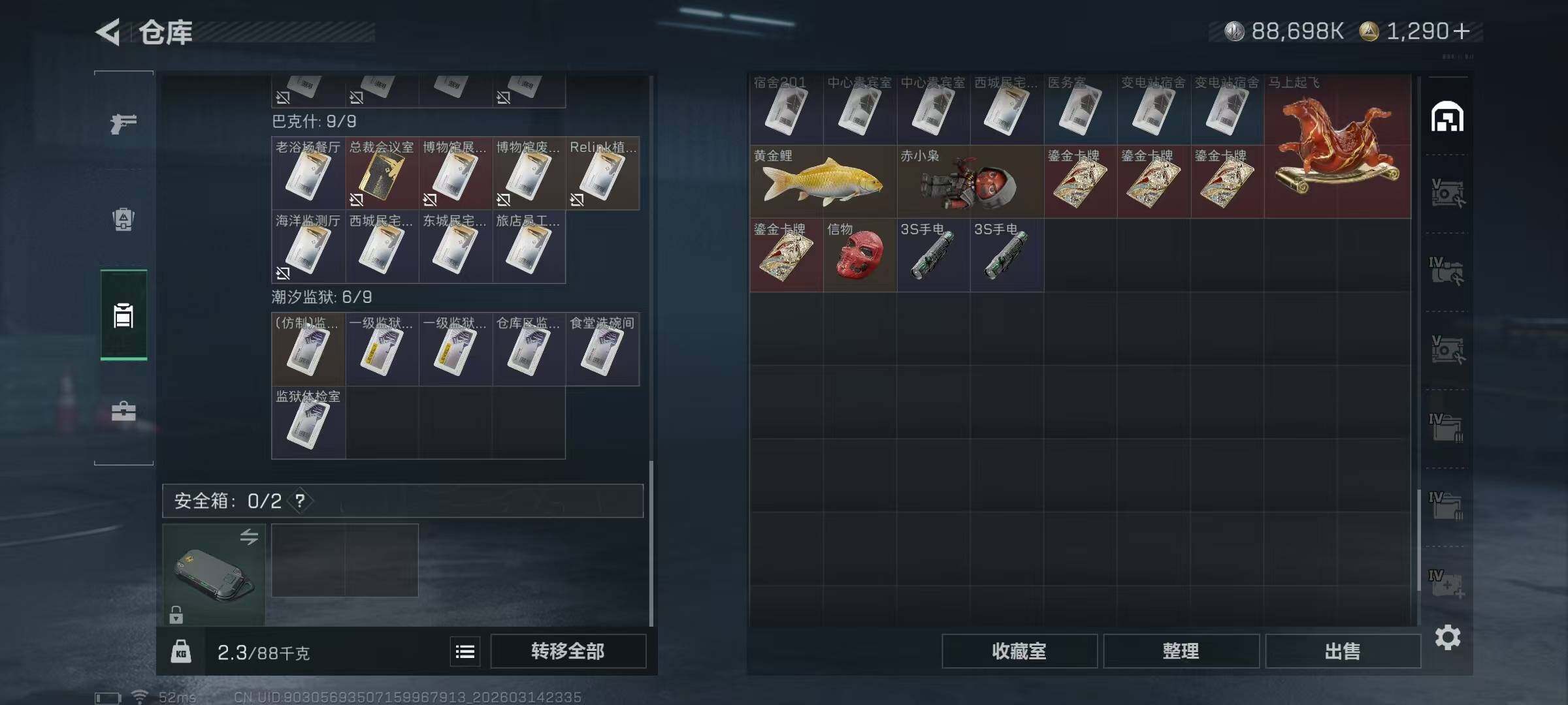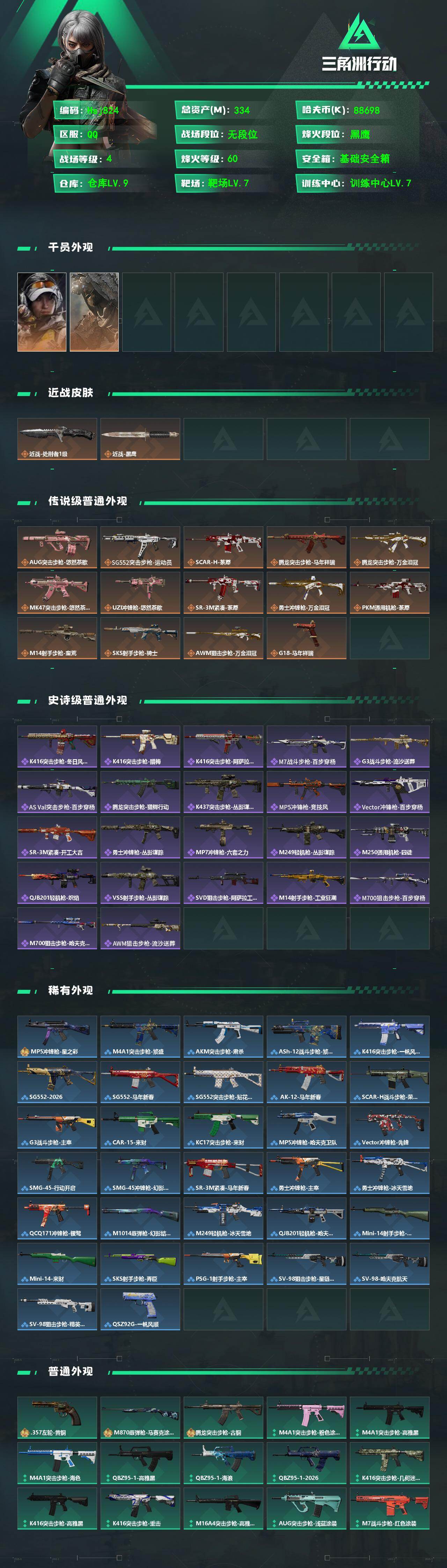 【优质资产号】【总资产334M流动资产279M哈夫币8869w】可二次--全面战场等级:4/烽火地带等级:60【处刑者1级、金牌射手、荒原猎手】三角币&卷1290、特勤处几乎毕业、收藏室39/85