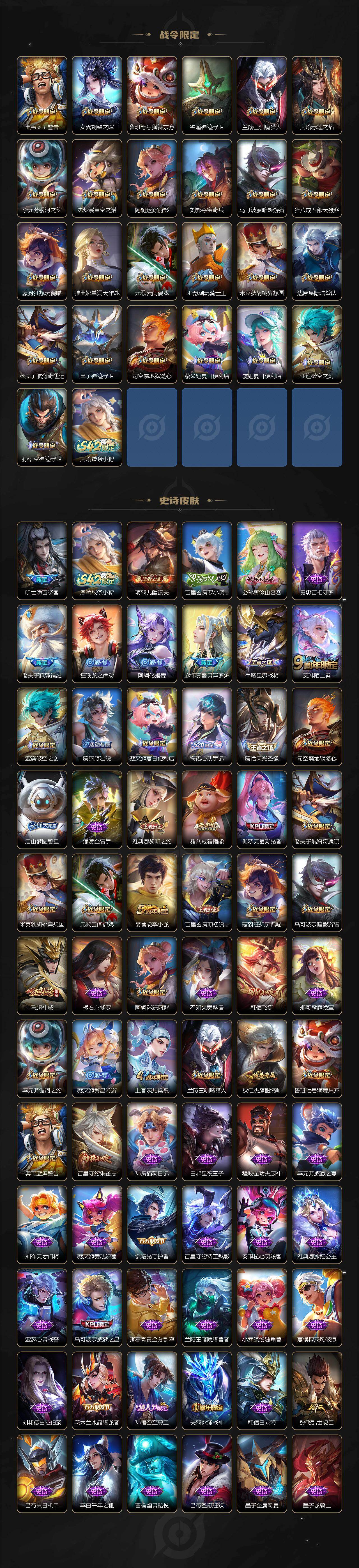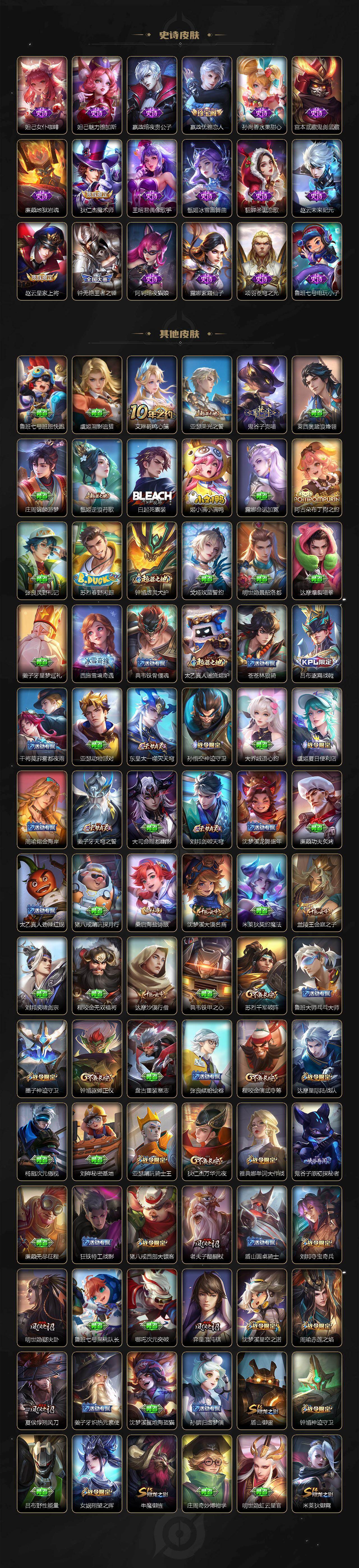 贵族9/皮肤325/典藏2/传说47/史诗89/英雄128/刘邦