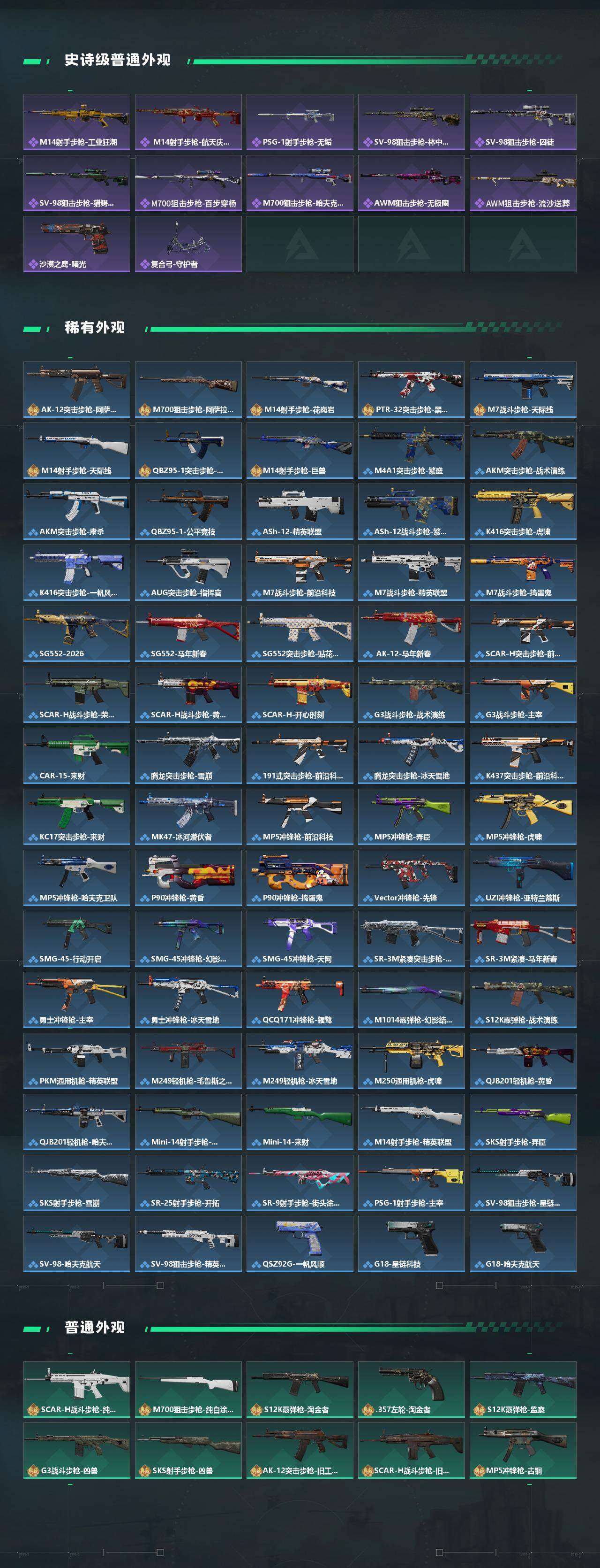 【近战皮肤】:近战-北极星,近战-赤枭,近战-黑鹰