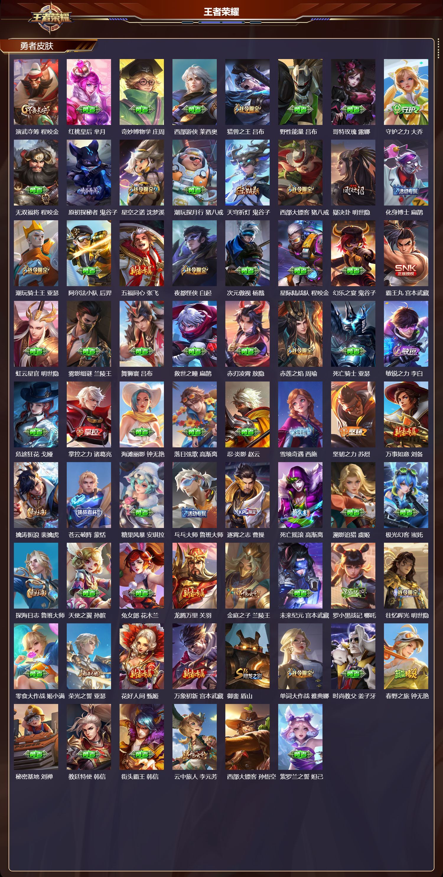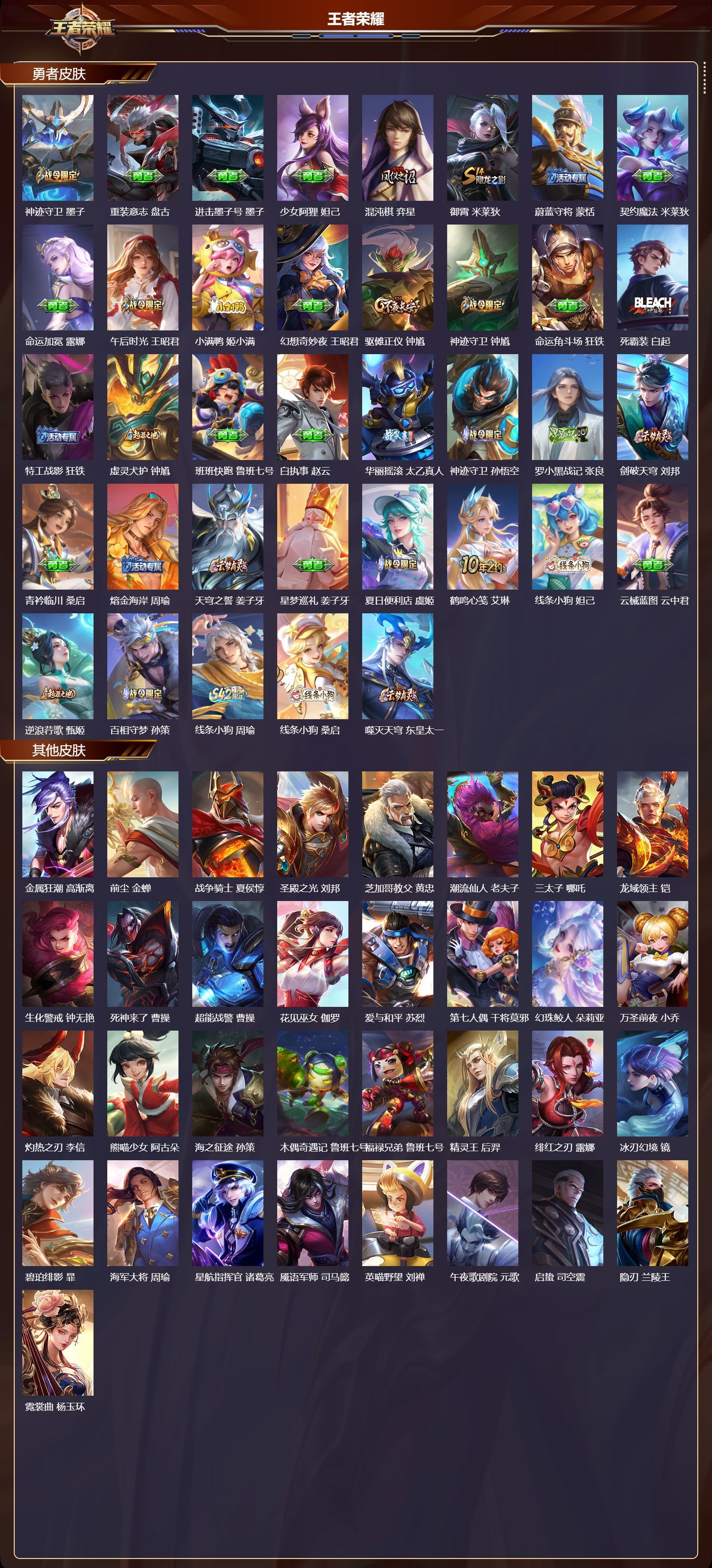 苹果QQ/荣耀王者/389皮肤/128英雄/3典藏/0珍品无双/4无双/0珍品传说/38传说/123