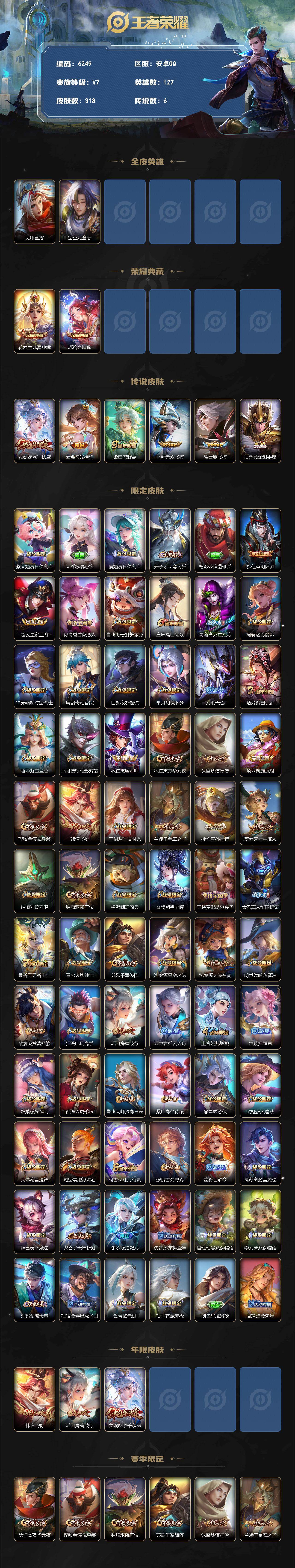 459-[17879256]可二次 贵族7-贵族积分31347-318皮2典藏6传说0无双 安卓手Q384区318皮2典藏6传说0无双V7 营地ID1850397801最强王者【荣耀典藏】:拾光映像,九霄神辉【优质限定皮肤】:无双飞将【传说皮肤】:黄金射手座,愿照·千秋盛,无双飞将,幻光神枪,鸣野蒿,云鹰飞将【史诗皮肤】:线条小狗,天才门将,绅士熊喵,龙之律动,化蝶舞,暗影游猎,器灵·浮梦炉,茶境仙,万物之道,黄金分割率,迷踪丽影,百相守梦,未来纪元,星夜王子,节奏热浪,破空之剑,游园惊梦,心