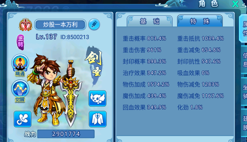 本区榜一,290万4阶剑客出了