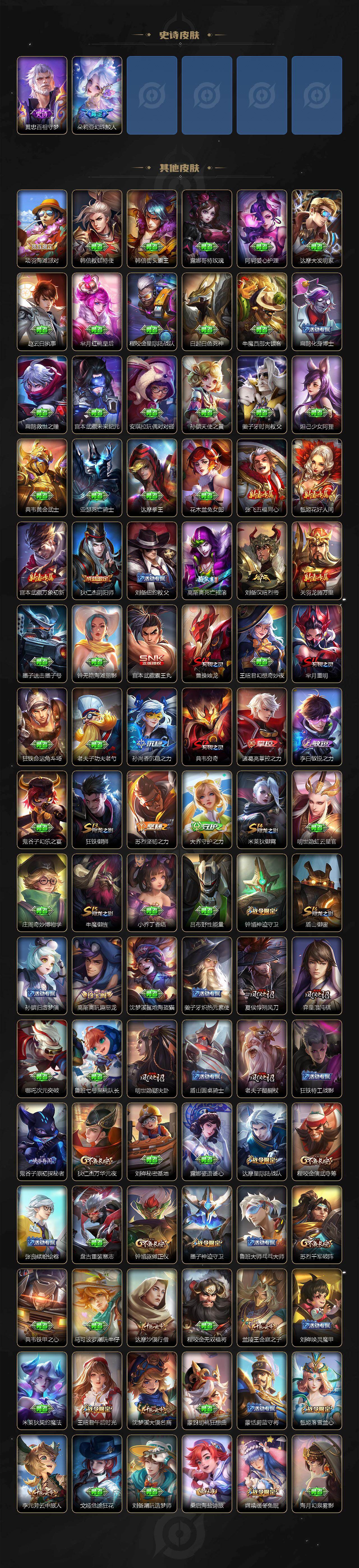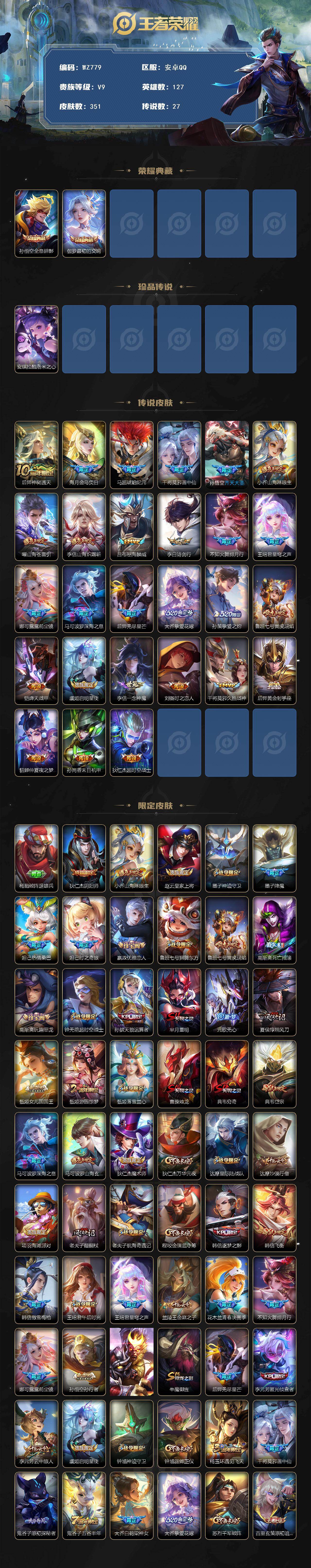 安卓Q-V9-最强王者段位-127英雄-351皮肤-2典藏皮肤-1珍品传说-27传说-103史诗