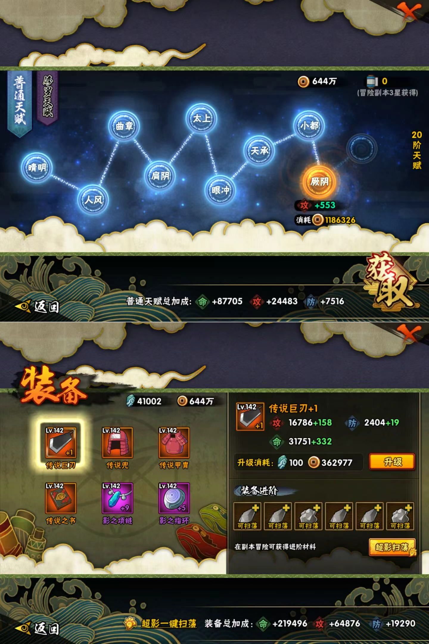 【S级】自来也「传说中的三忍」 宇智波带土「忍界大战」 佩恩「天道」 宇智波斑「五影会谈」 波风水门「九喇嘛连结」 宇智波斑「秽土转生·解」 漩涡鸣人「暴怒·第六尾」 漩涡鸣人·宇智波佐助 自来也「舞之豪杰」 宇智波带土「十尾人柱力」 宇智波止水「须佐能乎」 宇智波鼬「须佐能乎」