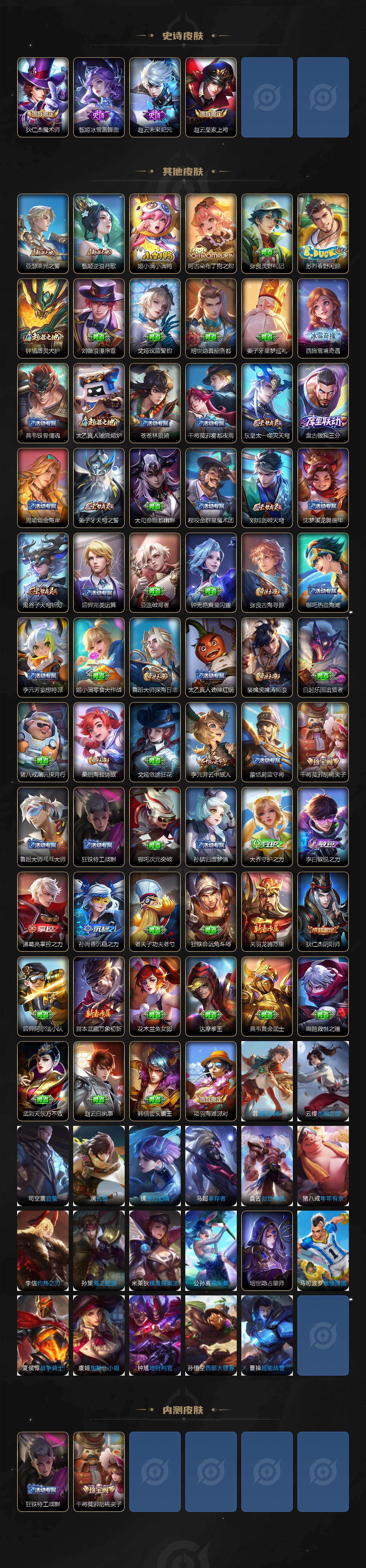 【限定皮肤】:蒙犽顽岩魄,姜子牙天穹之誓,狄仁杰阴阳师,赵云皇家上将,马可波罗山海玄木