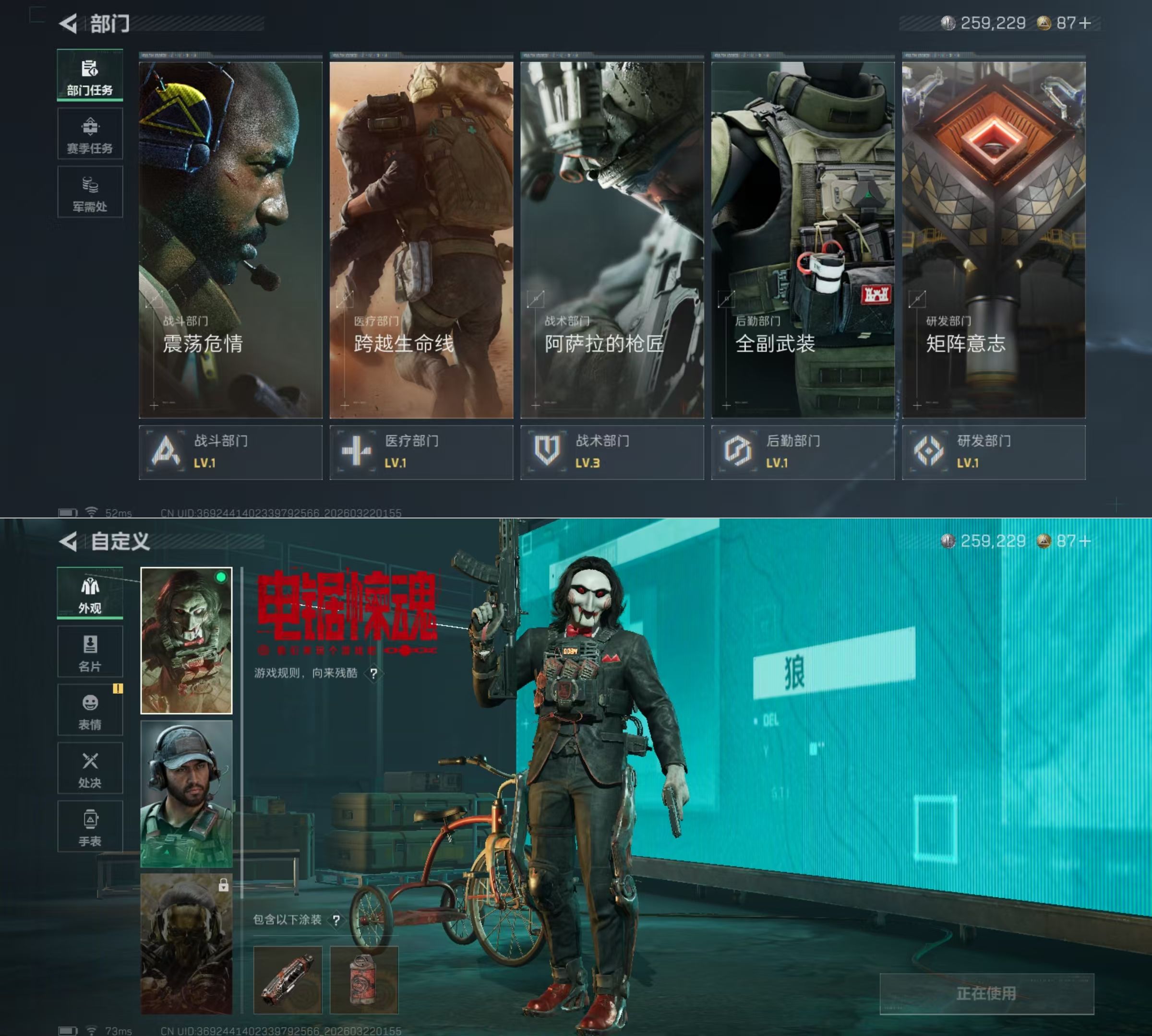DSJZ1826【资产5.4M 电锯惊魂 荒原猎手 刀皮暗星 行刑者】三端互通-总价值5.5M-哈夫币259k-烽火地带等级60-烽火地带【干员皮肤】红狼-电锯惊魂 乌鲁鲁-荒原猎手【近战武器】黑鹰 处刑者 暗星【枪皮】AS Val突击步枪-星之彩 AS Val突击步枪-地平线 M4A1突击步枪-粉色涂装 M4A1突击步枪-高雅黑 M4A1突击步枪-零点 AKM突击步枪-肃杀 AKM突击步枪-锦绣 QBZ95-1突击步枪-高雅黑 QBZ95-1突击步枪-海浪 QBZ95-1突击步枪-海色 QBZ