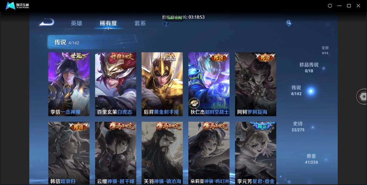 【W6316】亮点:2.4k低场次打野号(热门皮肤)白虎志.至尊宝.一念神魔.岱宗.千年之狐.安卓Q-不可二次-贵6-97英雄-85皮肤-4传说-28限定-1个性按键.贵族积分1.1万