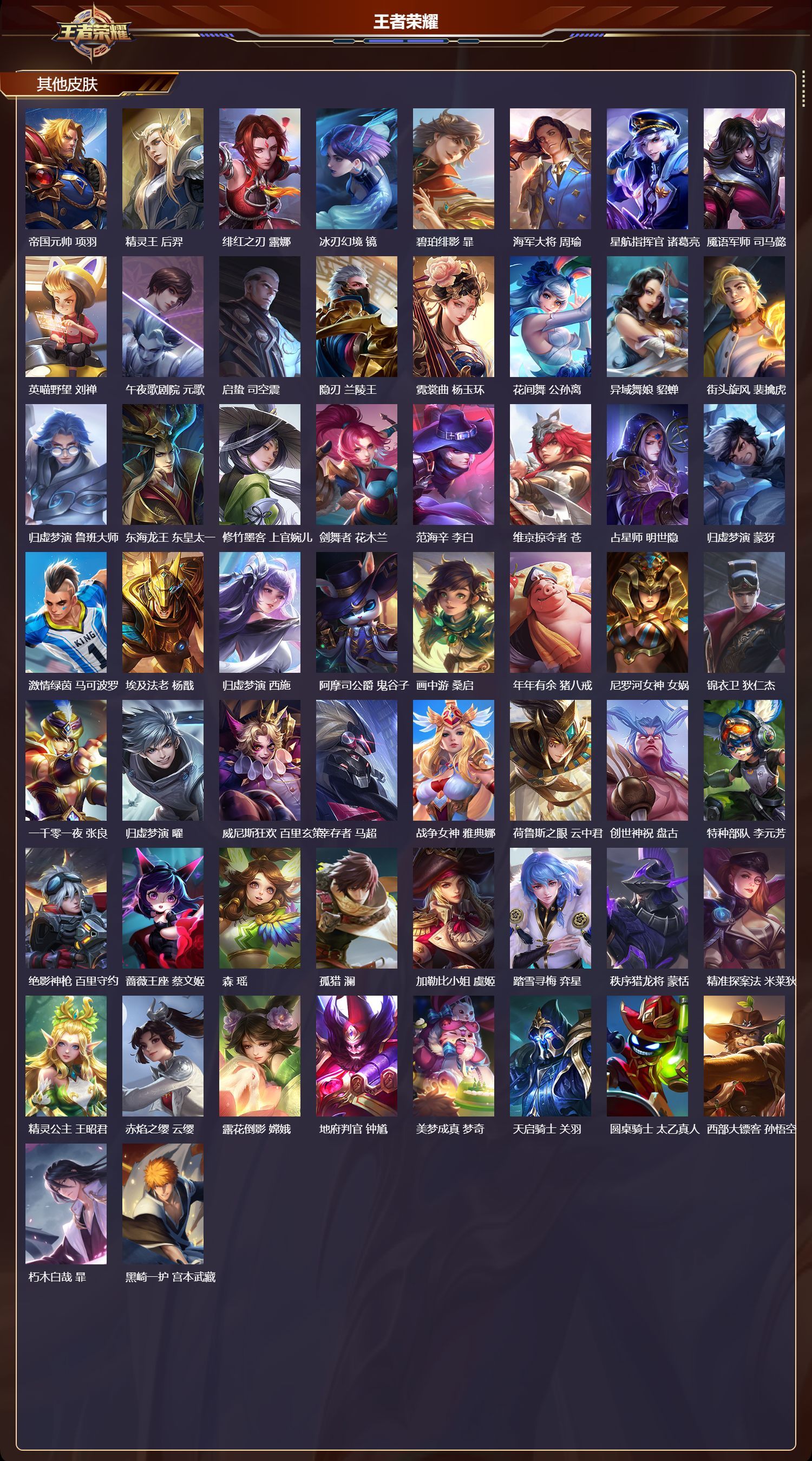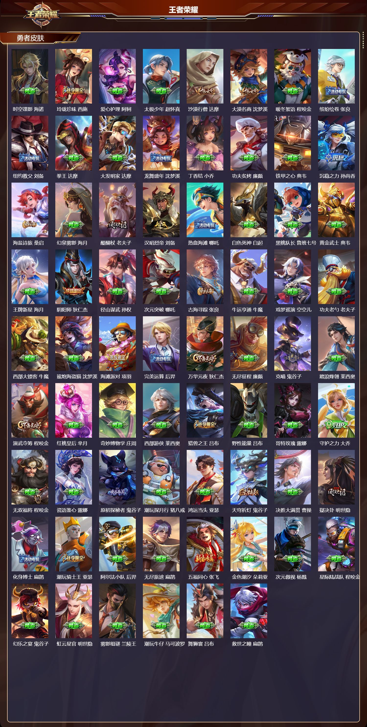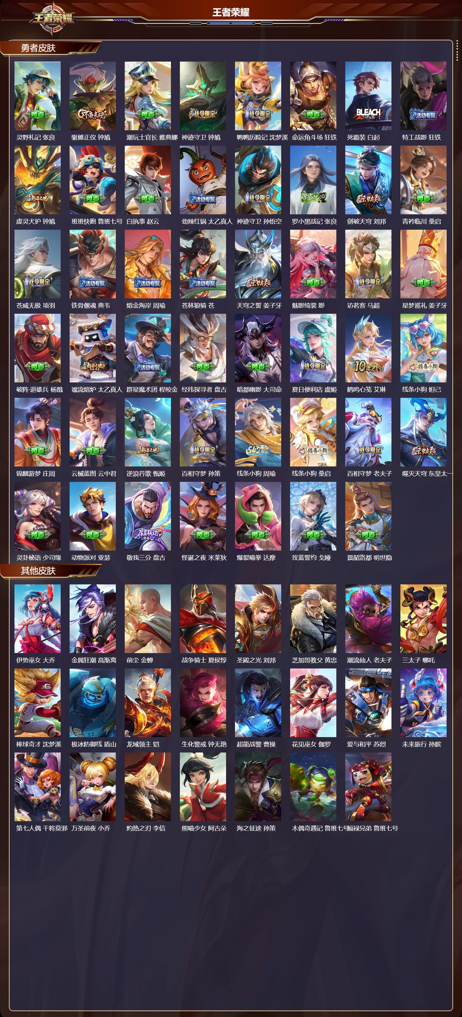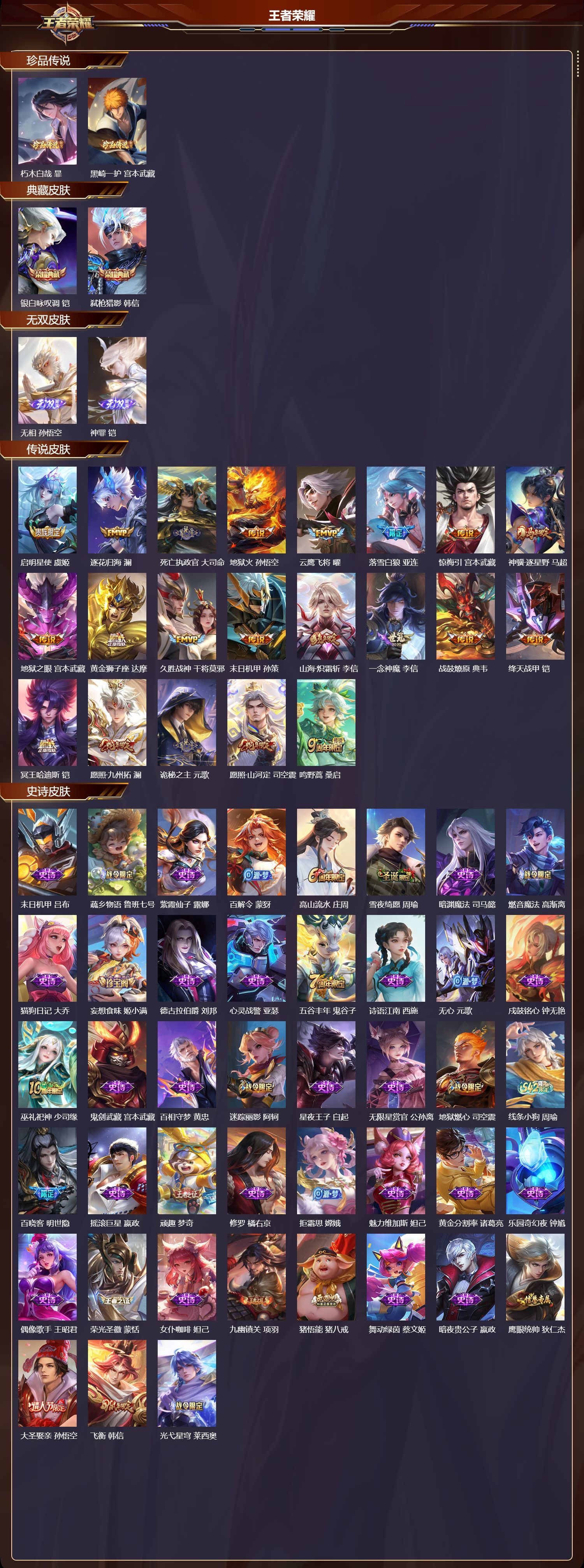 苹果QQ/荣耀王者/404皮肤/128英雄/2典藏/0珍品无双/2无双/2珍品传说/21传说/113