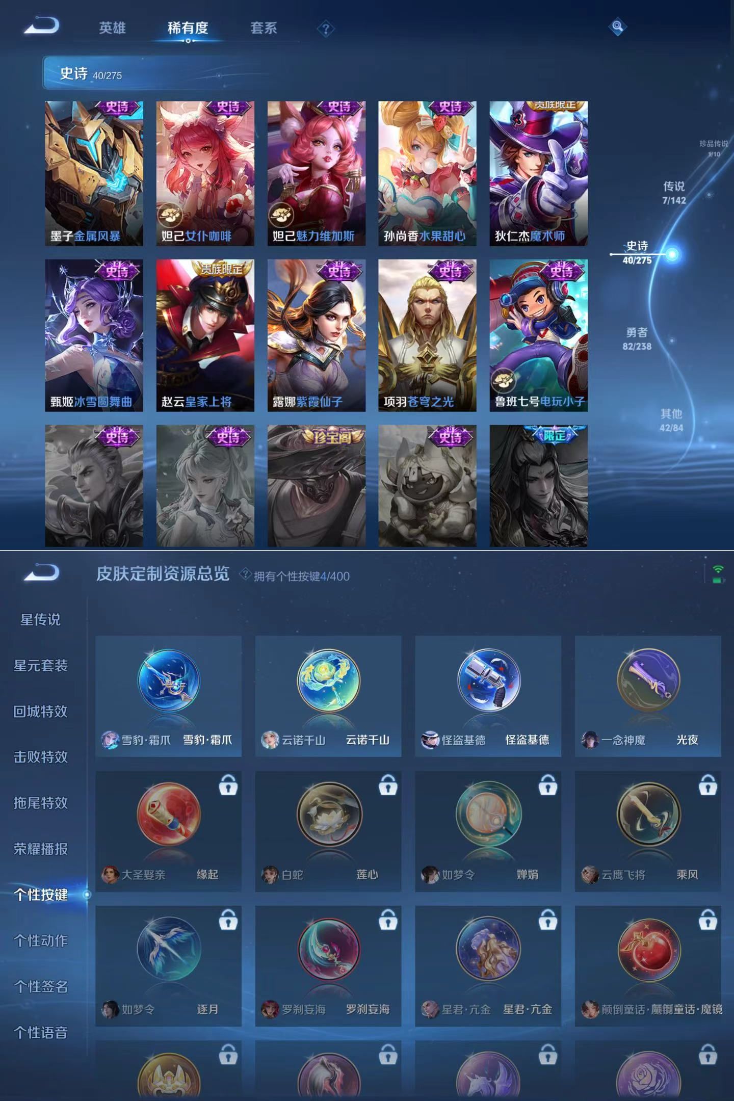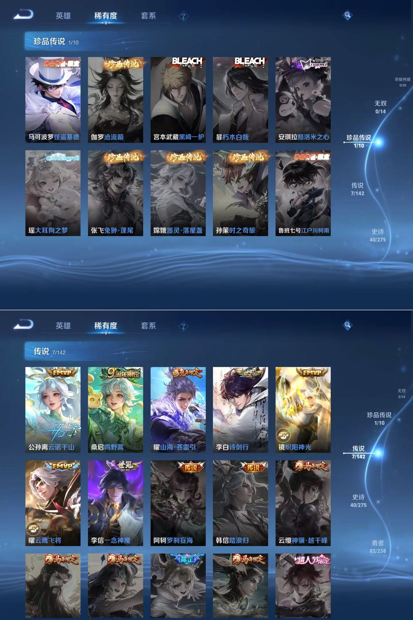 贵族7 126英雄 172皮 1珍品传说怪盗基德 7传说4按键皮肤