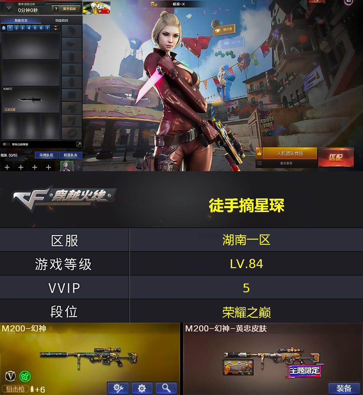 湖南一区-5V-0王者武器数-0炫金武器数【热门武器】:M200-幻神【皮
