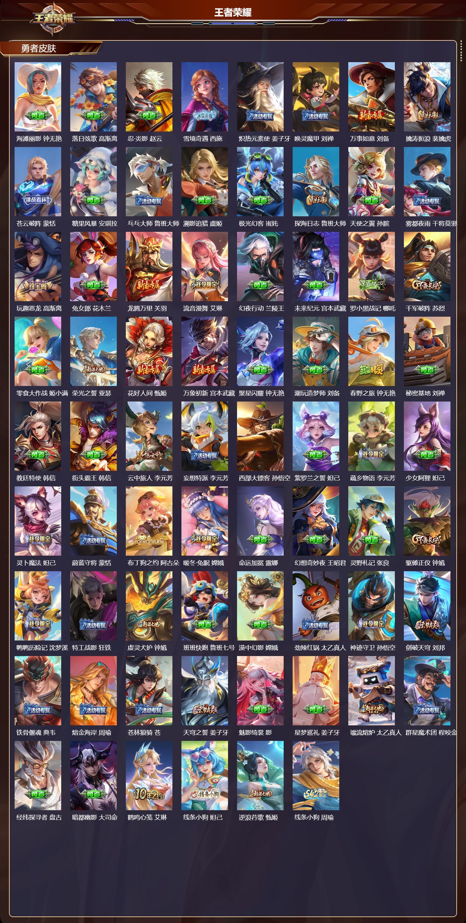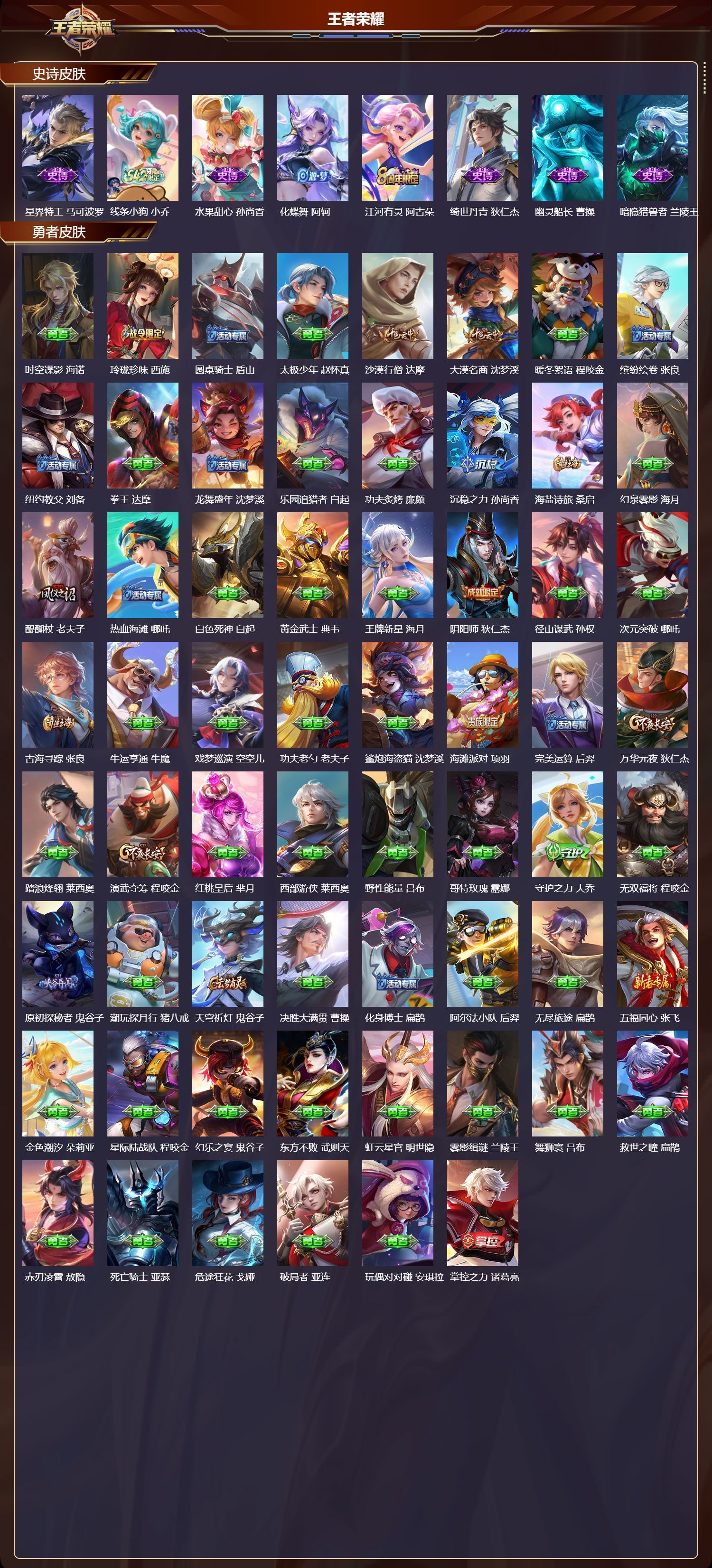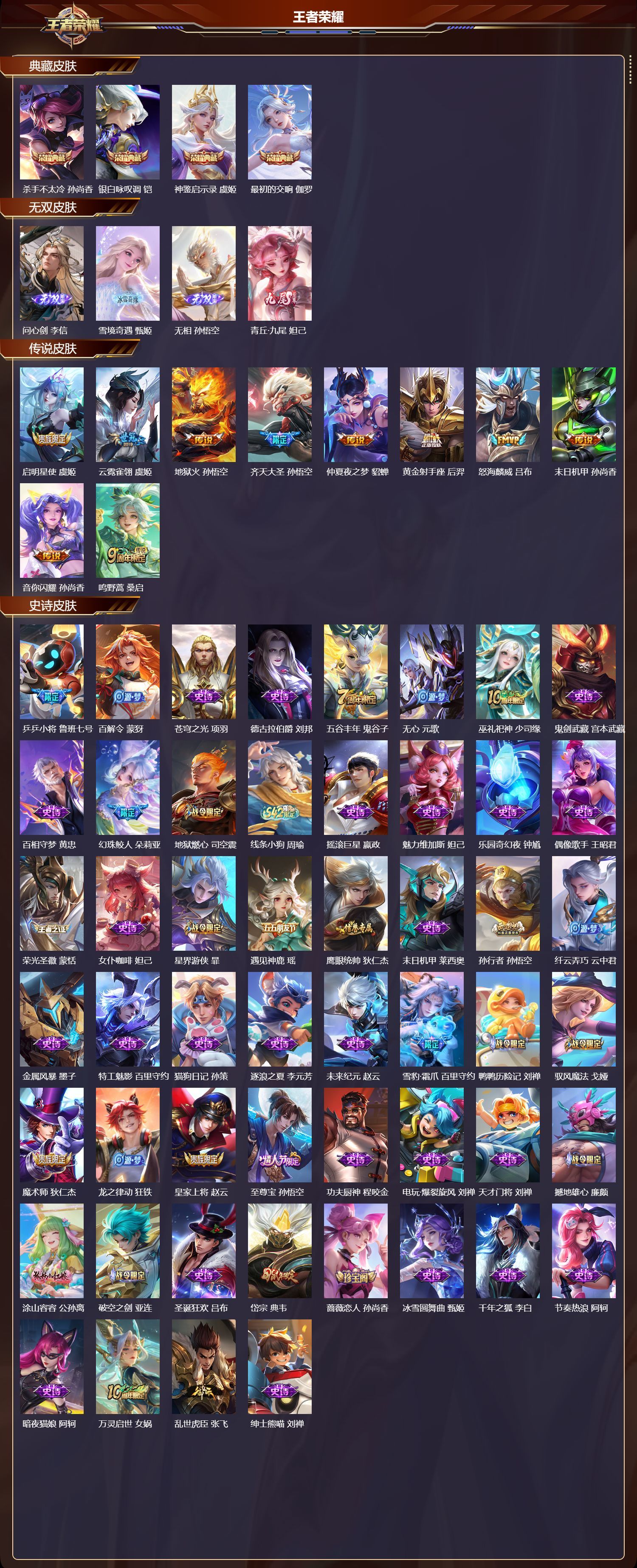 安卓QQ/最强王者/269皮肤/128英雄/4典藏/0珍品无双/4无双/0珍品传说/10传说/60史