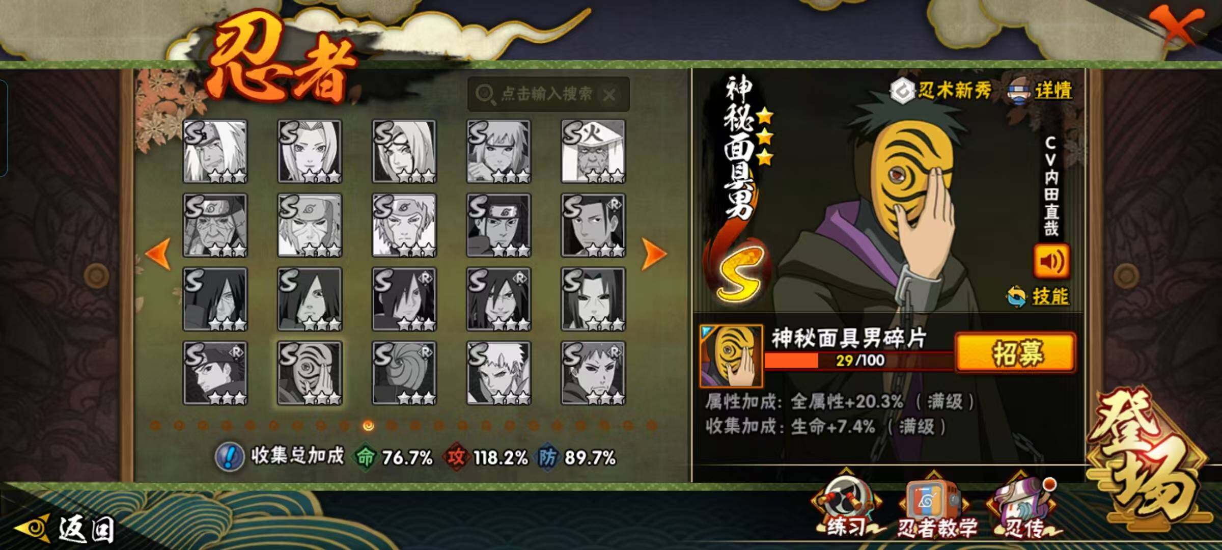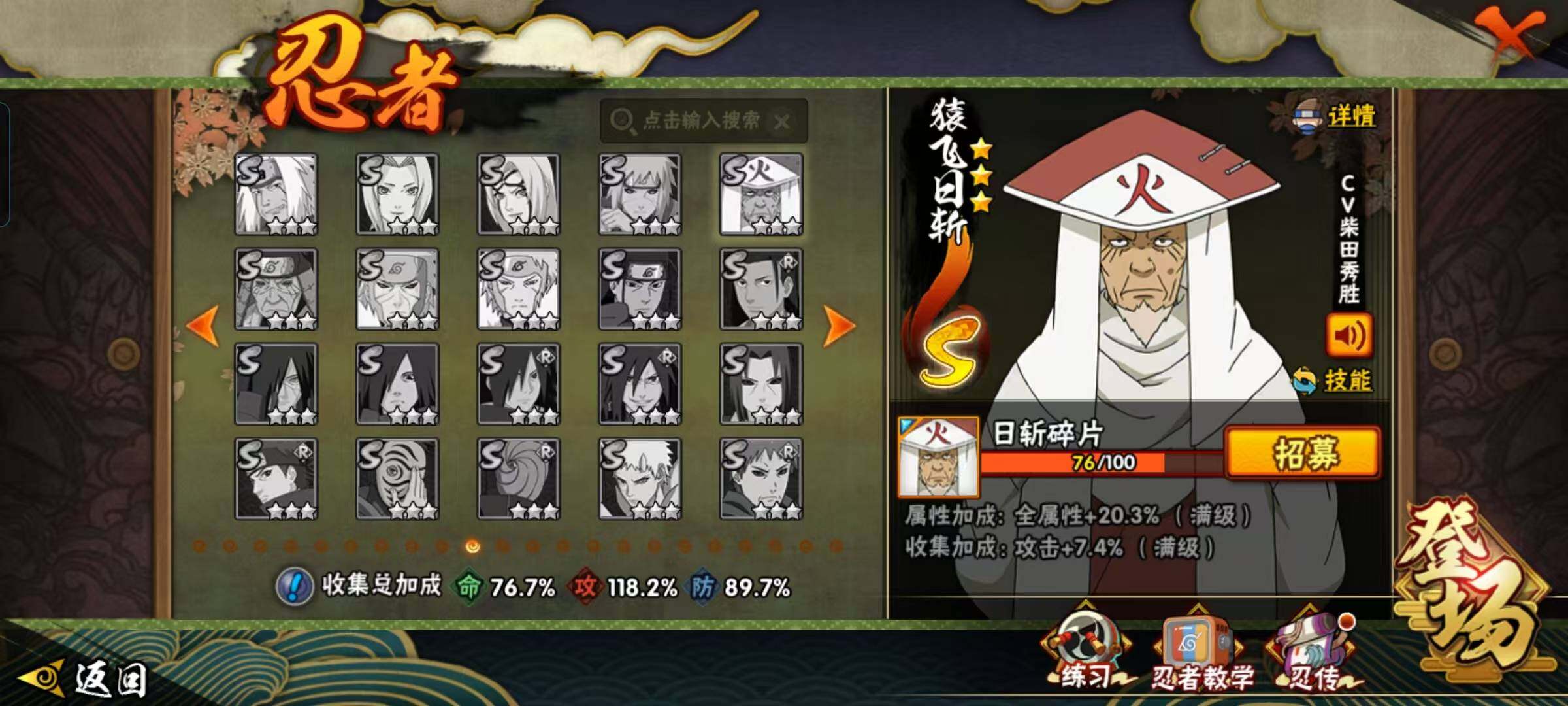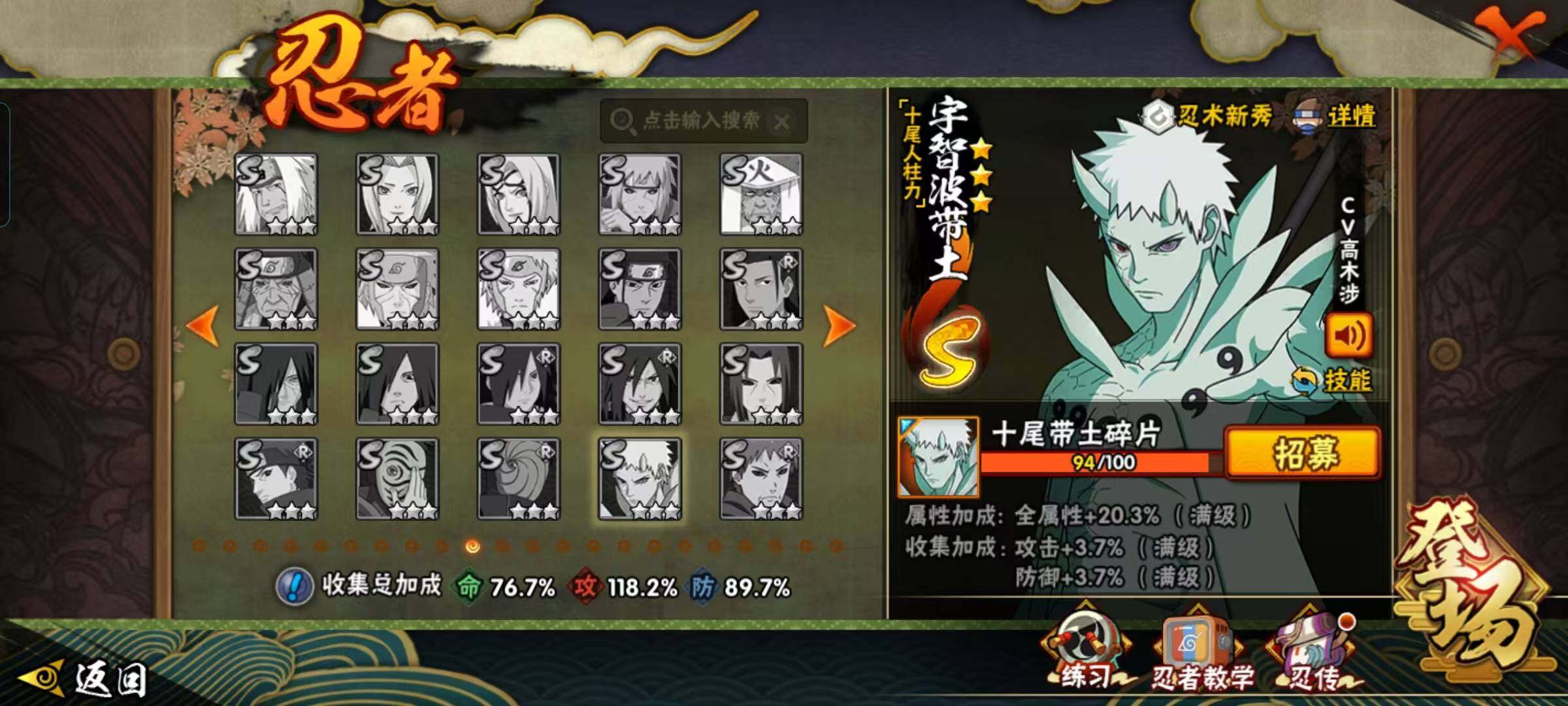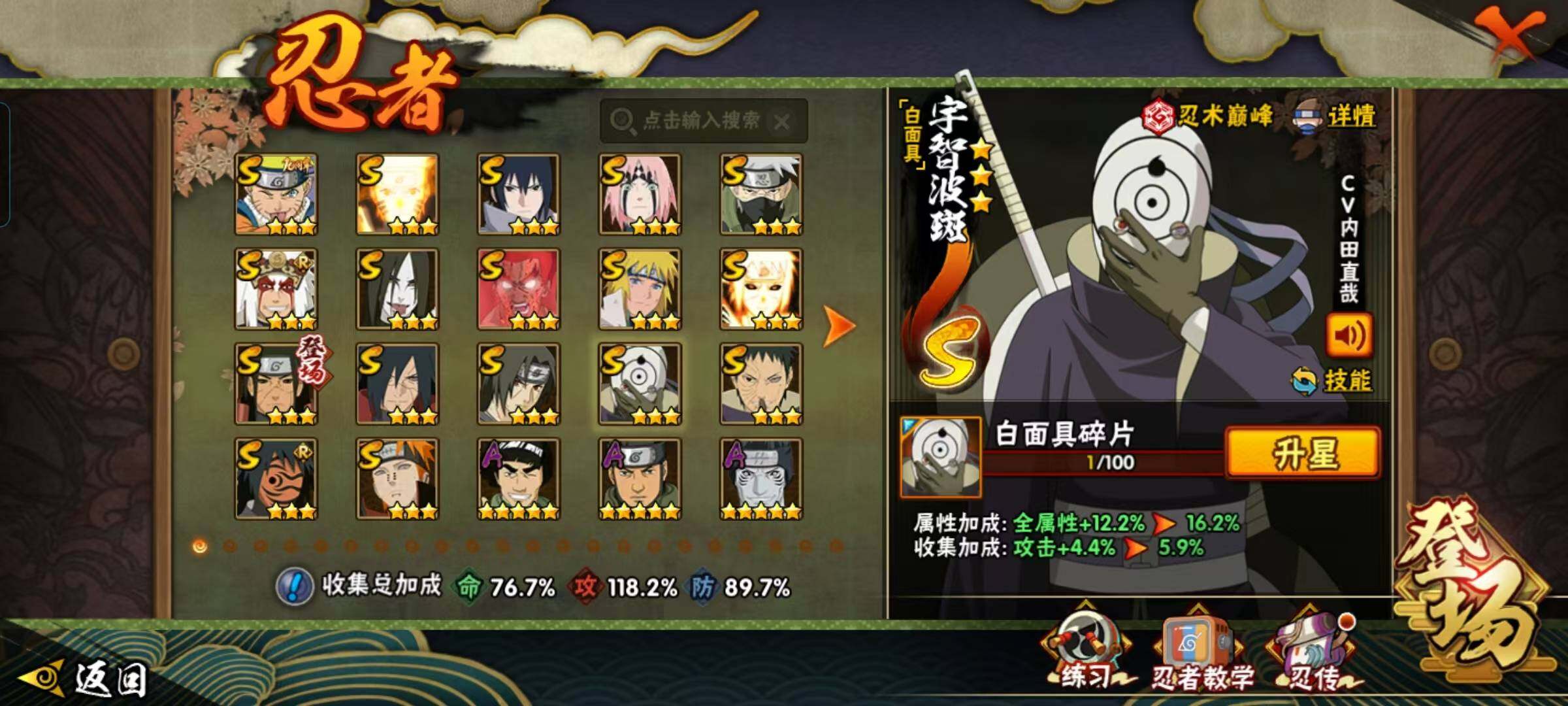 V7/战力991W/S忍17/A忍39/通灵兽18/3星波风