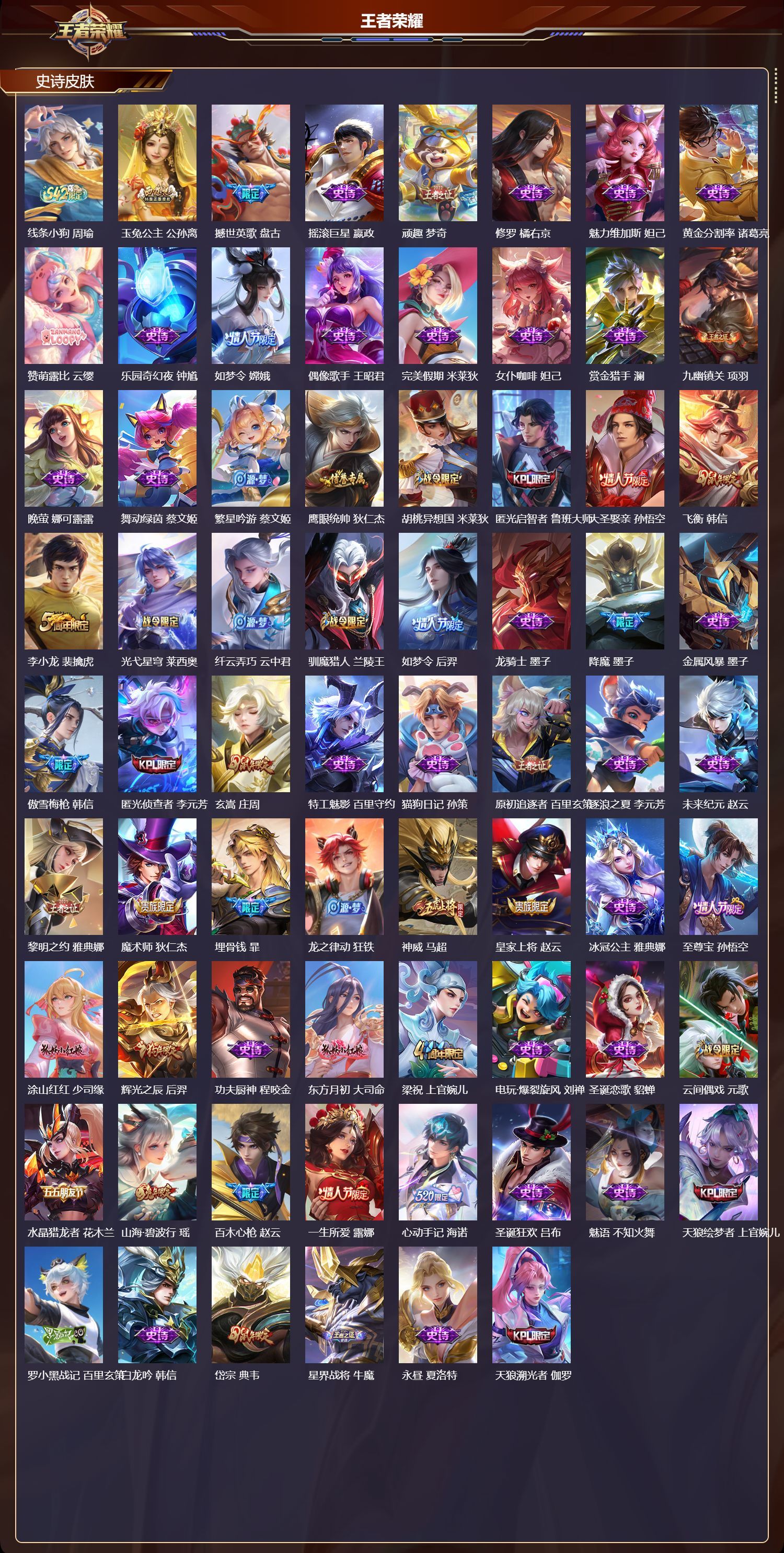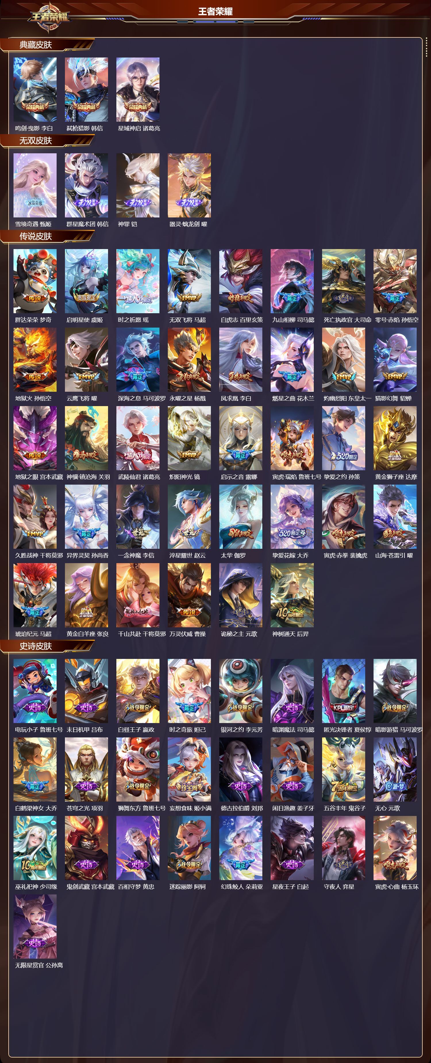 苹果QQ/荣耀王者/389皮肤/128英雄/3典藏/0珍品无双/4无双/0珍品传说/38传说/123