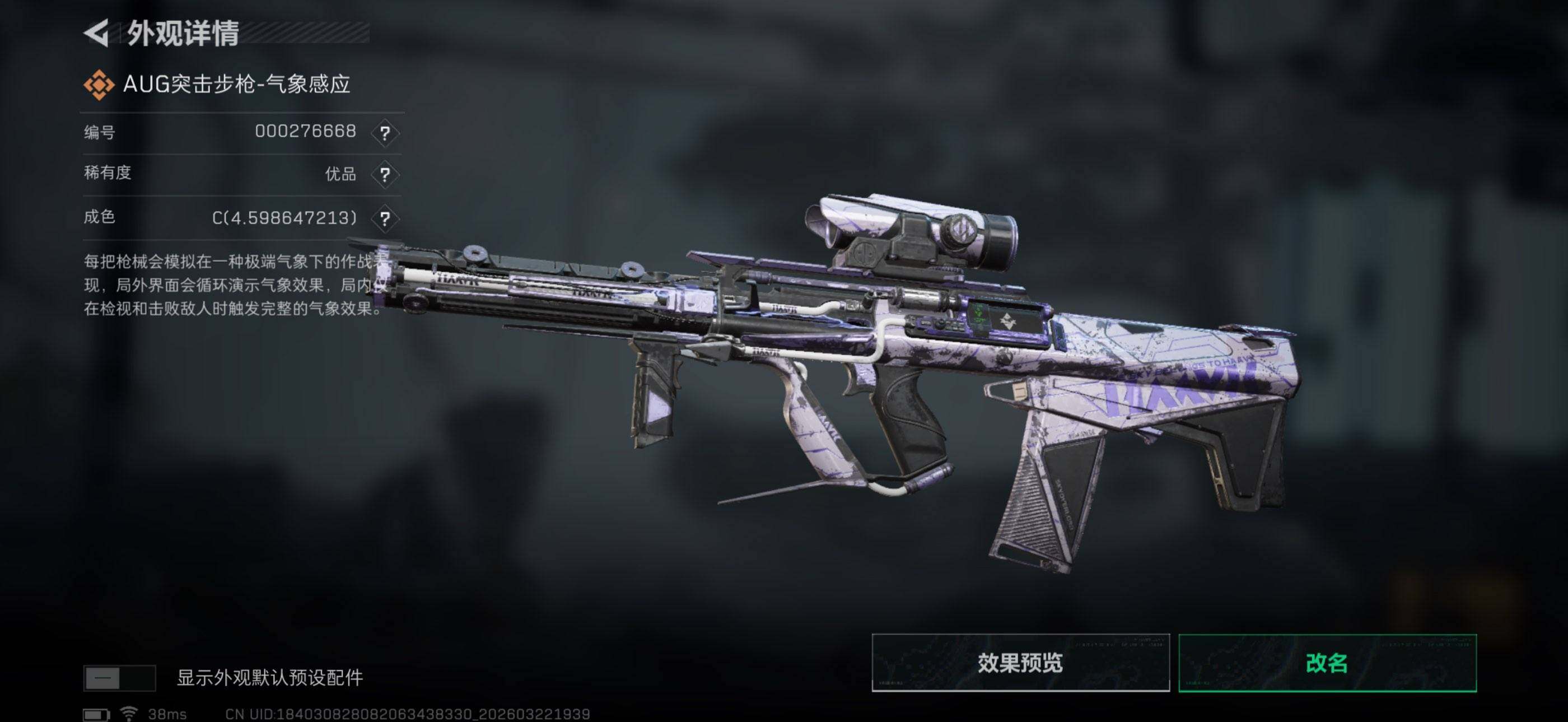 【典藏外观成色】:AUG突击步枪-气象感应(优品C)