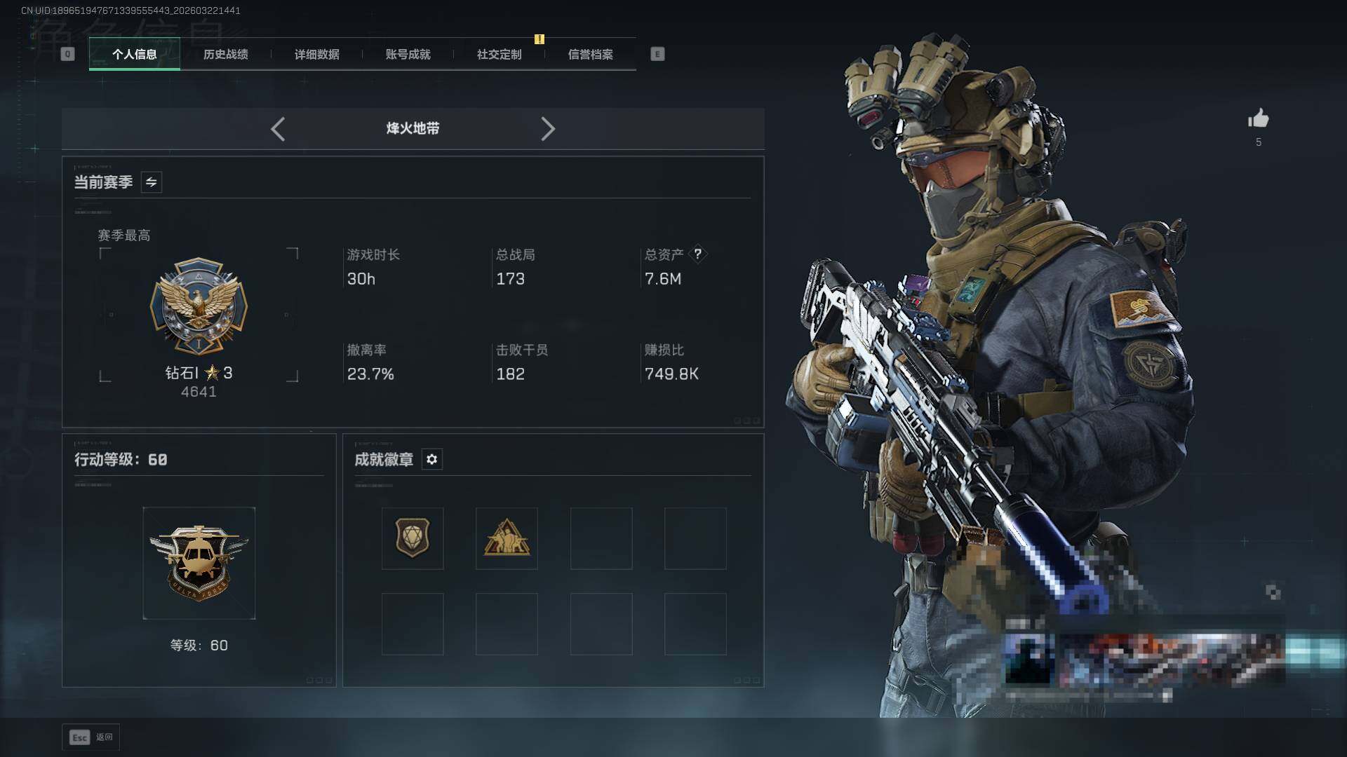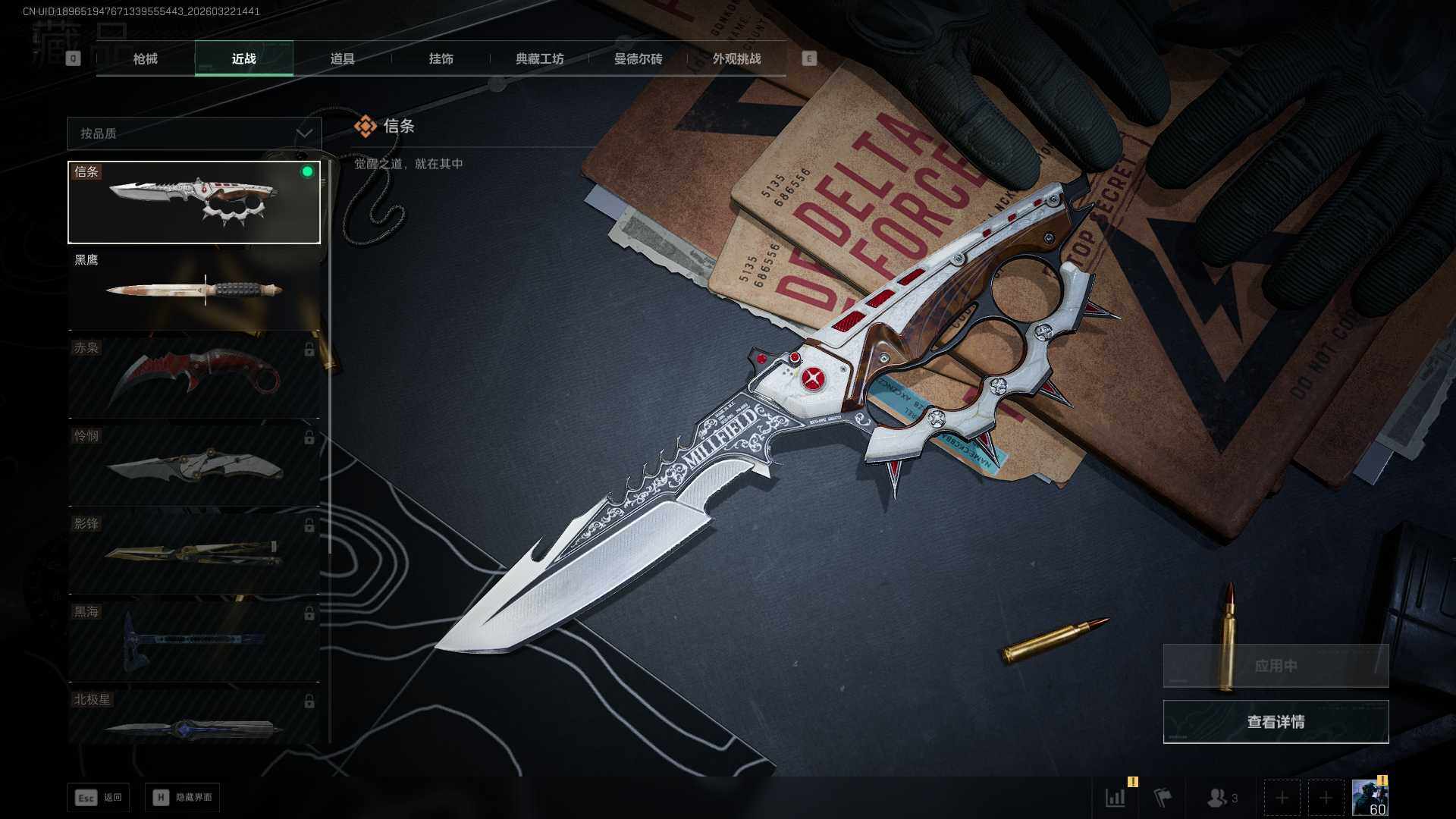 【SJZF6807】总资产(M):7M/哈夫币(K):333K/哈夫币(K):333K/传说枪皮数:15/全面战场等级:17_段位:上等兵/烽火地带等级:60_段位:钻石/骇爪-维什戴尔/深蓝-不破誓约/红狼-电锯惊魂/露娜-金牌射手/近战-信条/近战-黑鹰/AKM突击步枪-锦绣/AUG突击步枪-悠然茶歇/SG552突击步枪-运动员/SCAR-H战斗步枪-启航/KC17突击步枪-电锯惊魂/MK47突击步枪-悠然茶歇/P90冲锋枪-信条/UZI冲锋枪-悠然茶歇/M250通用机枪-骑士之心/M14射