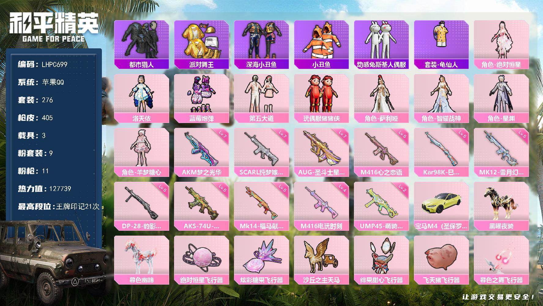 苹果 手Q-9粉装-11特效枪-3载具-6粉色飞行器-127