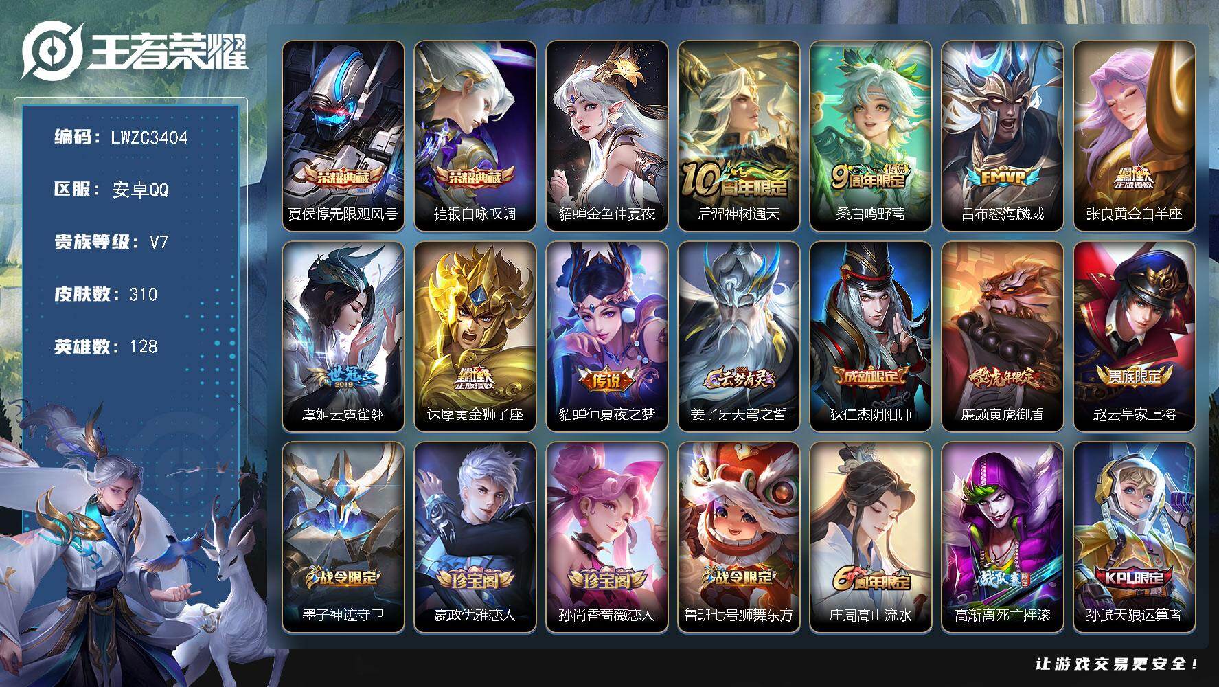 V7-最强王者段位-128英雄-310皮肤-1星元-2典藏皮肤-7传说-90史诗