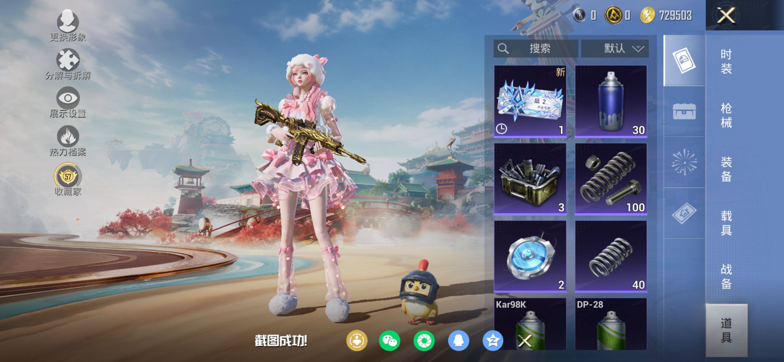 苹果 手Q-无敌战神框-5粉装-6特效枪-0载具-3粉色飞行器-51766热力值-12王牌印记-127套装-183枪皮