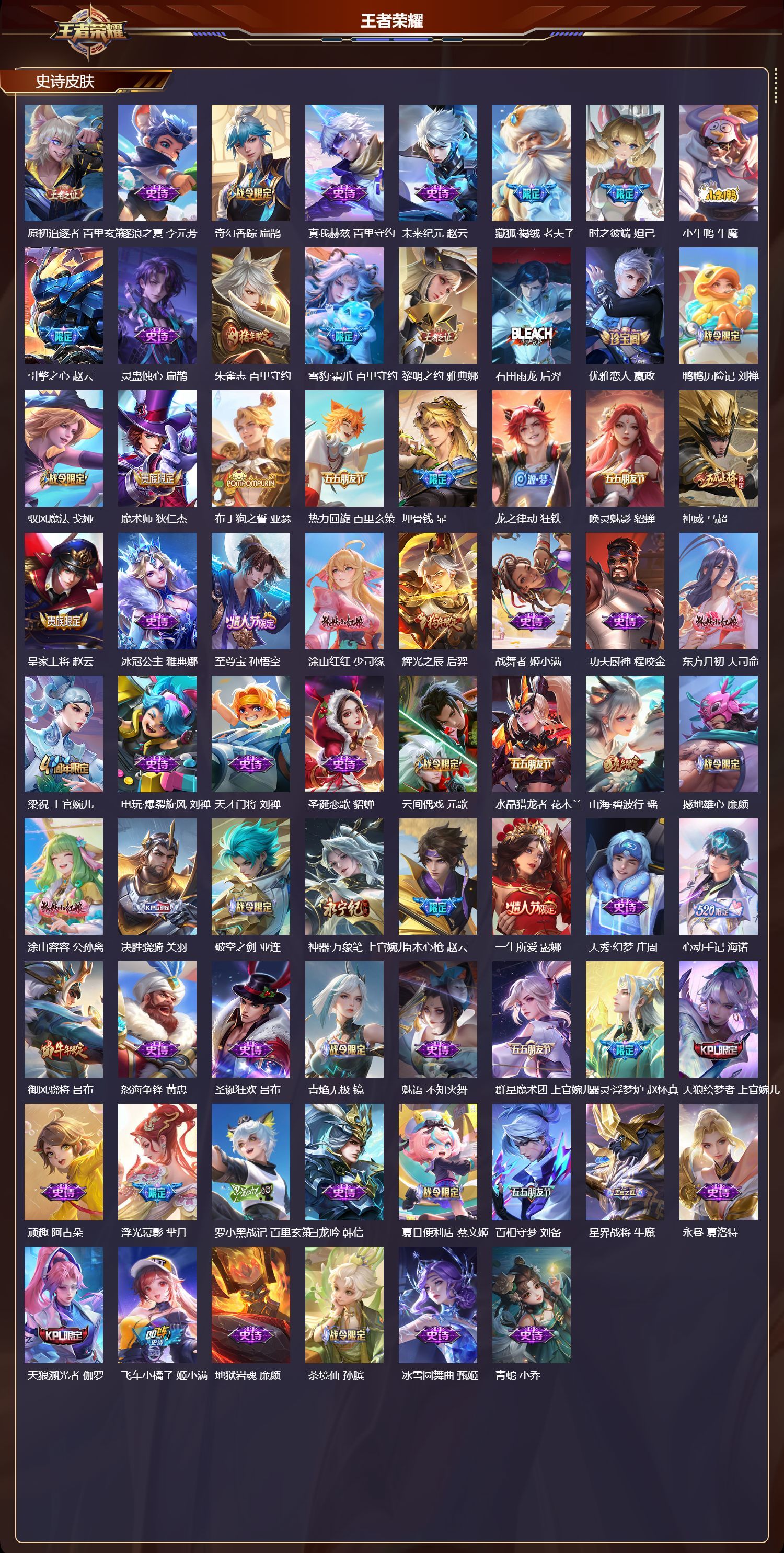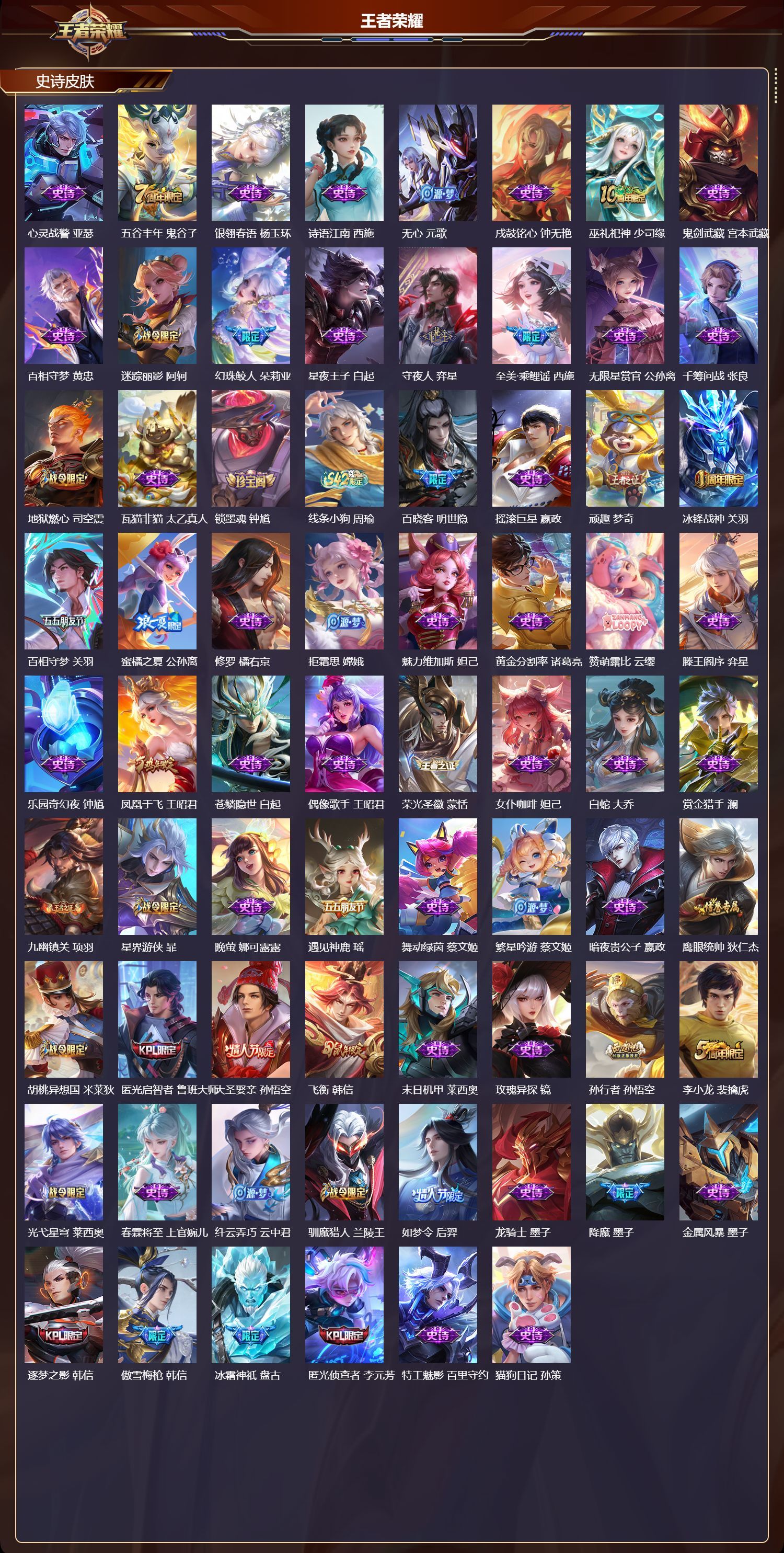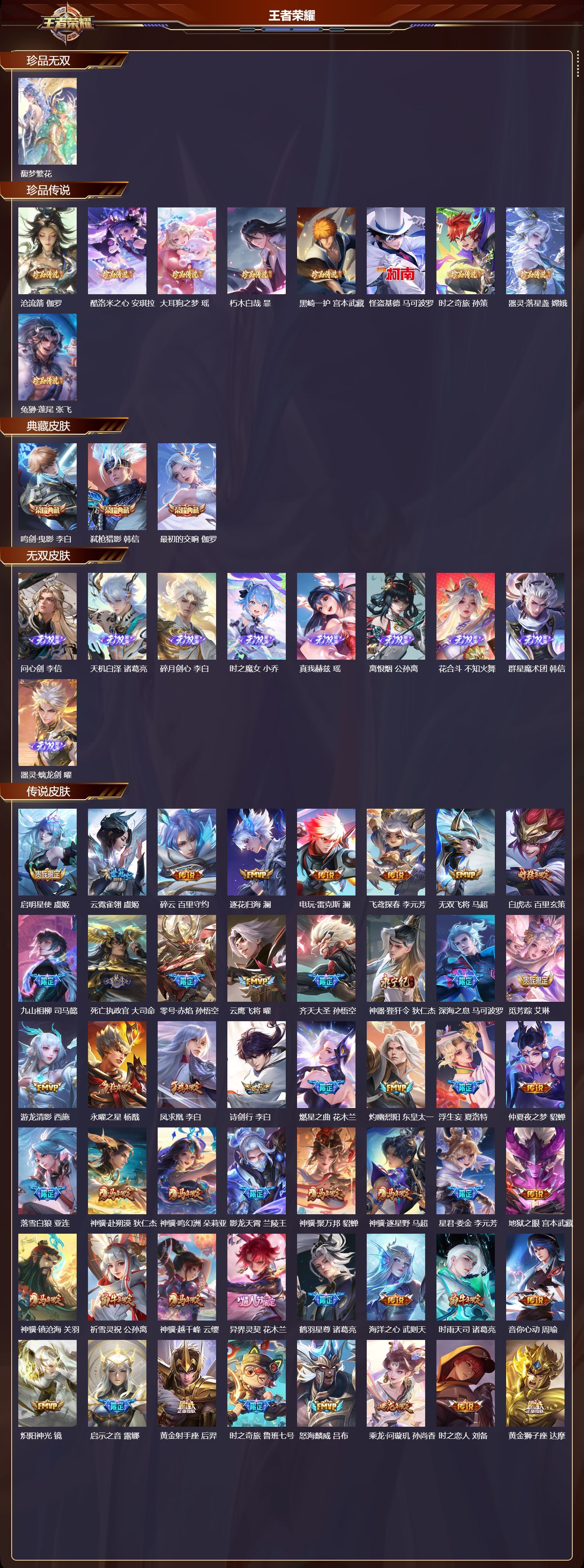 苹果QQ/荣耀王者/613皮肤/126英雄/3典藏/1珍品无双/9无双/9珍品传说/92传说/211