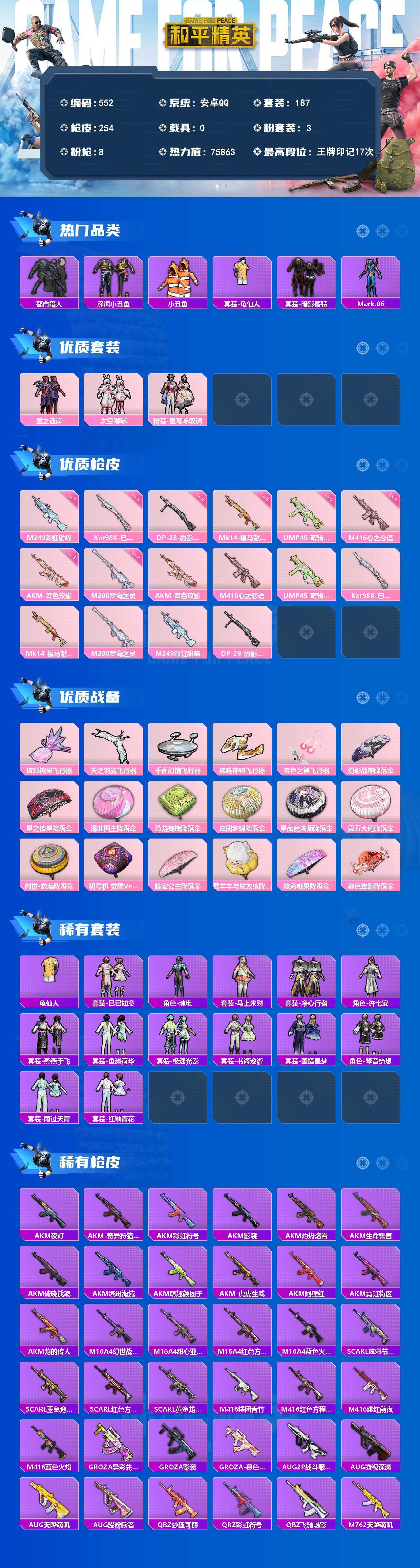 安卓 手Q-3粉装-8特效枪-0载具-5粉色飞行器-75863热力值-17王牌印记-187套装-254枪皮