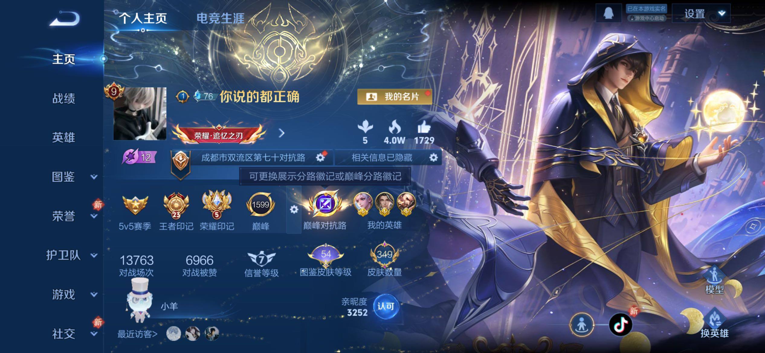 可换绑【V9极品对抗路打野号·李白全皮·一万强巅峰对抗路·对抗路48段·打野4