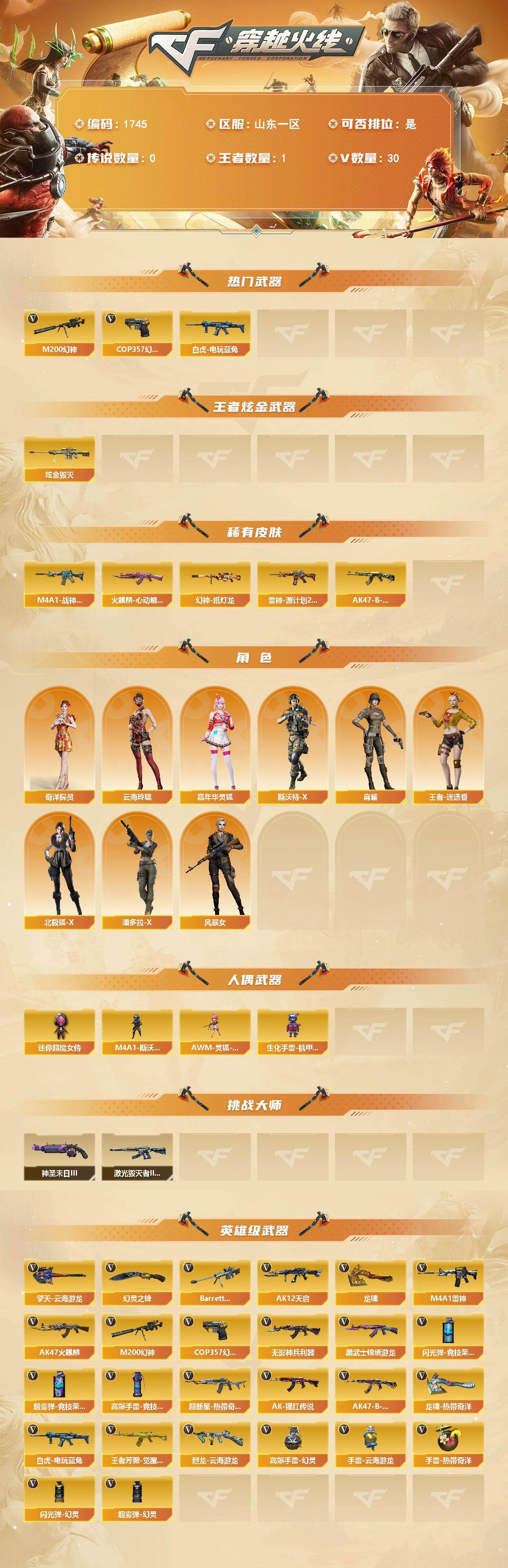 山东一区-28V-1王者武器数-1炫金武器数【热门武器】:M200-幻神,白