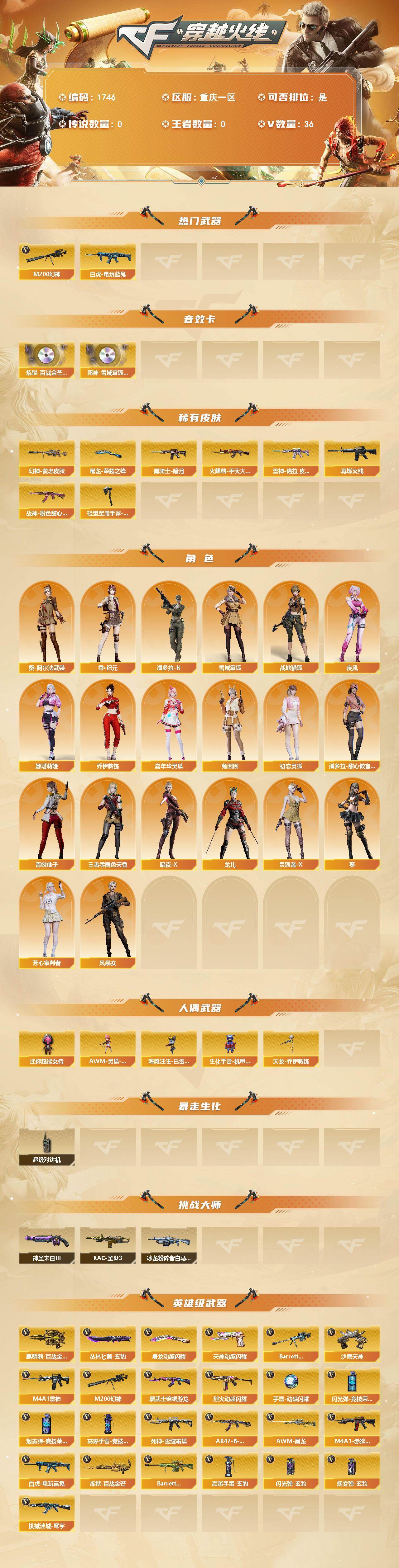 重庆一区-36V-0王者武器数-0炫金武器数【热门武器】:M200-幻神*2