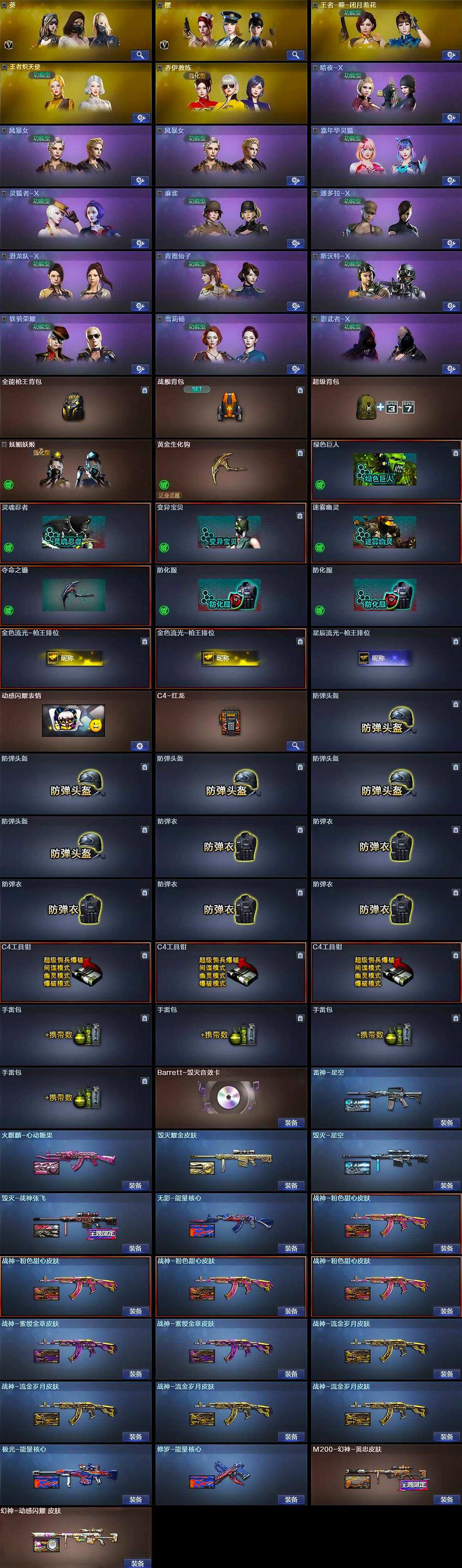 【ky6067】安徽一区-56V-12王者武器数-2炫金武器数【传说武器】:传说光耀【热门武器】:传说光耀,QBZ03-金色蔷薇,M4A1-青龙,M200-幻神,死亡之眼,王者炎心,汤姆逊-烈龙*6,RPK-盘龙,沙鹰-修罗*4【王者炫金武器】:王者炎心,王者之翼,王者之影,王者之魄*2,王者之怒*2,炫金超新星,炫金毁灭【音效卡】:Barrett-毁灭音效卡【皮肤】:M200-幻神-黄忠皮肤,幻神-动感闪耀 皮肤,雷神-星空,火麒麟-心动糖果,毁灭耀金皮肤,毁灭-星空,毁灭-战神张飞,无影-能