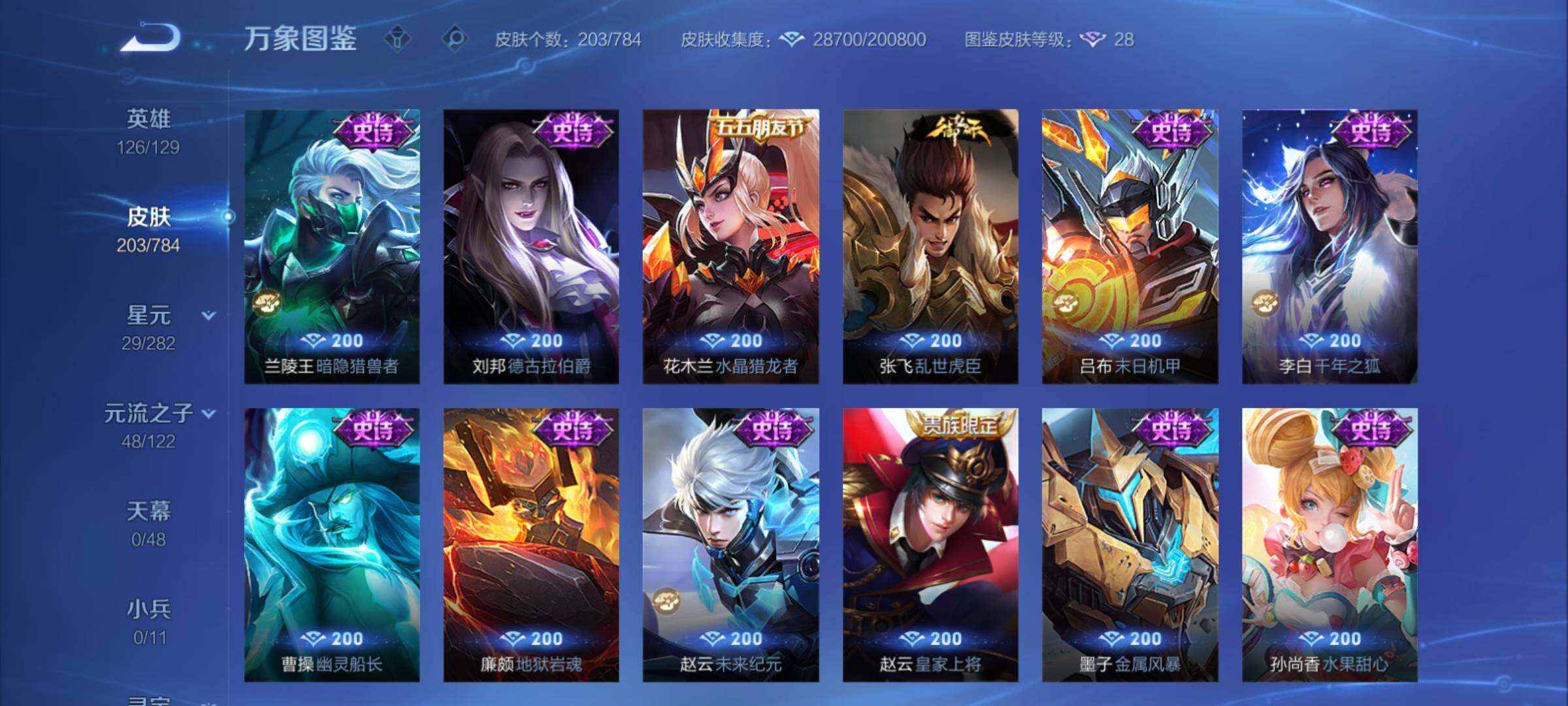 可换绑【精品推荐·怪盗基德·马超马限·赵云孙尚香龙限·炽霜斩·埋骨钱·浮光幕影·白晶晶】幸运值275 8按键,2星传说,8王者印记,五级铭文150,可二次CD18745,安卓Q-V7-203皮肤-1珍品传说-17传说-49史诗【英雄全皮】:孙权全皮,镜全皮,司空震全皮