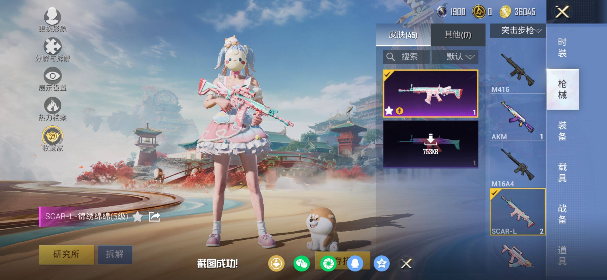 【粉色枪皮等级】:SCAR-L-锦绣绵绵(五级),P90-甜蜜草莓(五级),Kar98K-巳巳如意(三级),SPAS-12-蜜语绒猫(四级),DP-28-豹影疾电(四级),平底锅-喜羊羊与灰太狼(二级)