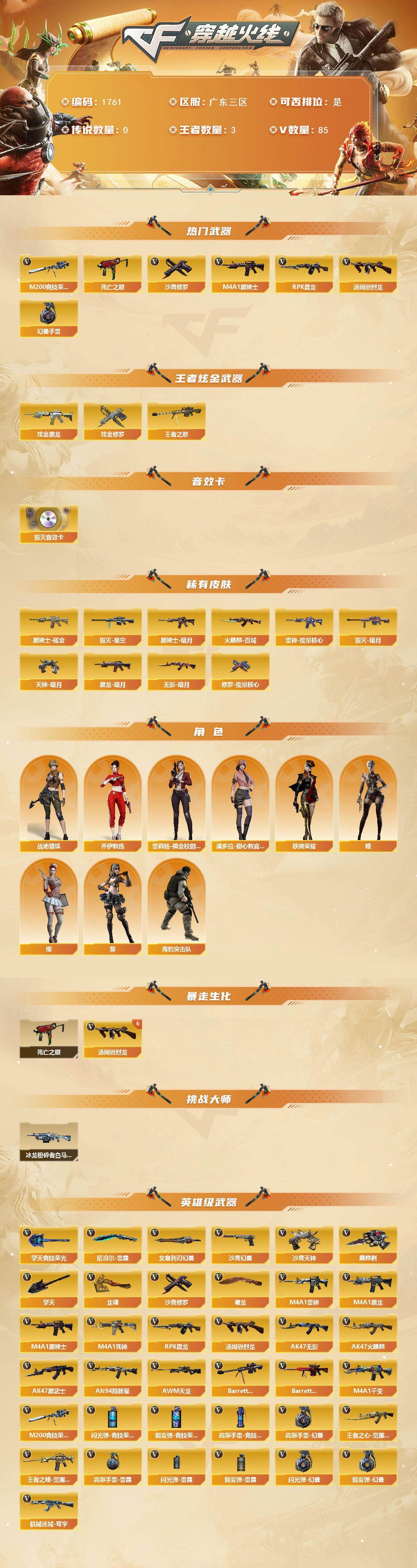 广东三区-88V-3王者武器数-2炫金武器数【热门武器】:M200-竞技荣光