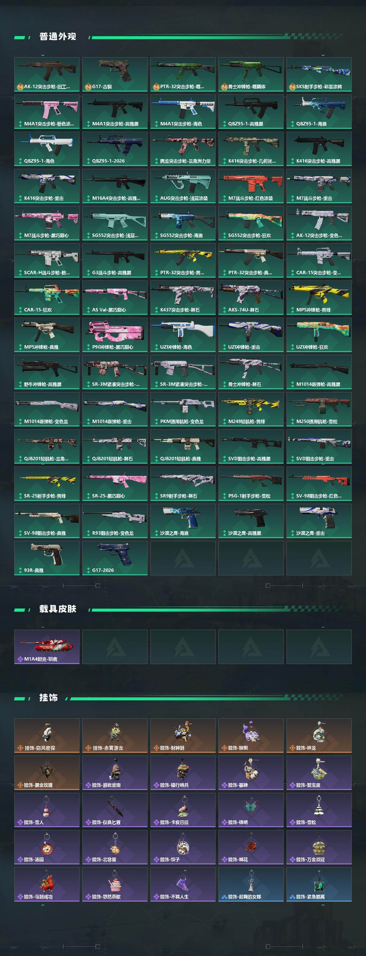 【传说外观】:AKM突击步枪-锦绣,AUG突击步枪-悠然茶歇,SG552突击步