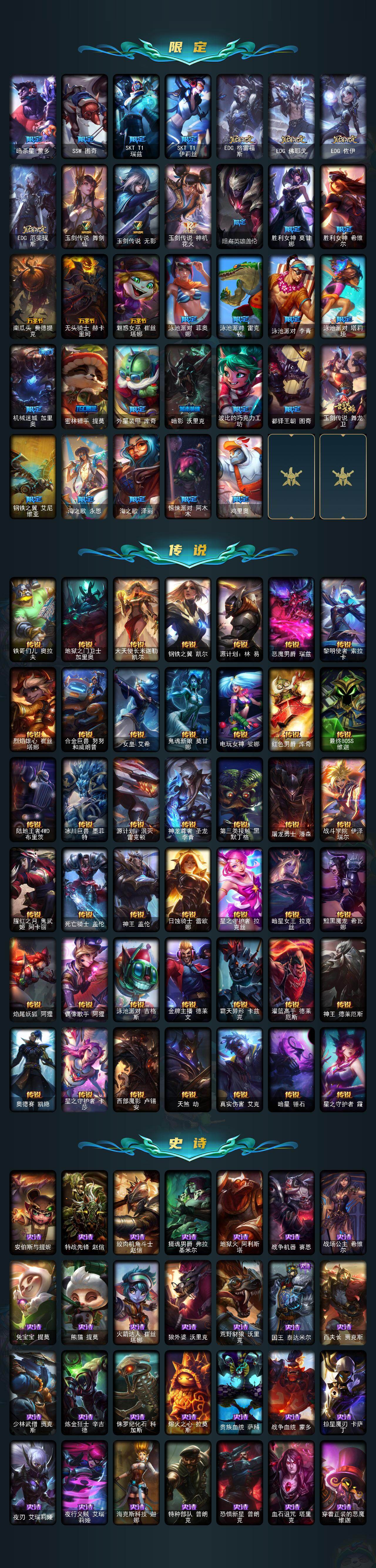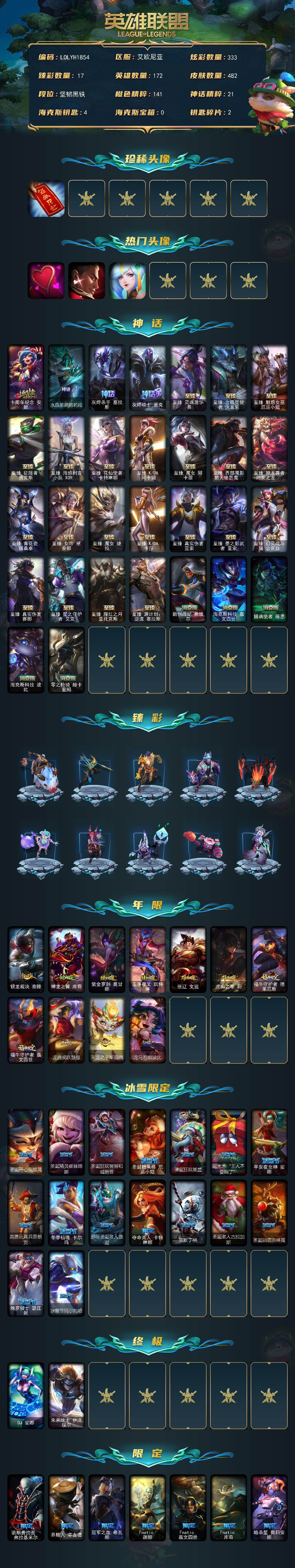 未定级段位-172英雄-482皮肤-333炫彩-2终极-30神话-67限定-42传说-93史诗