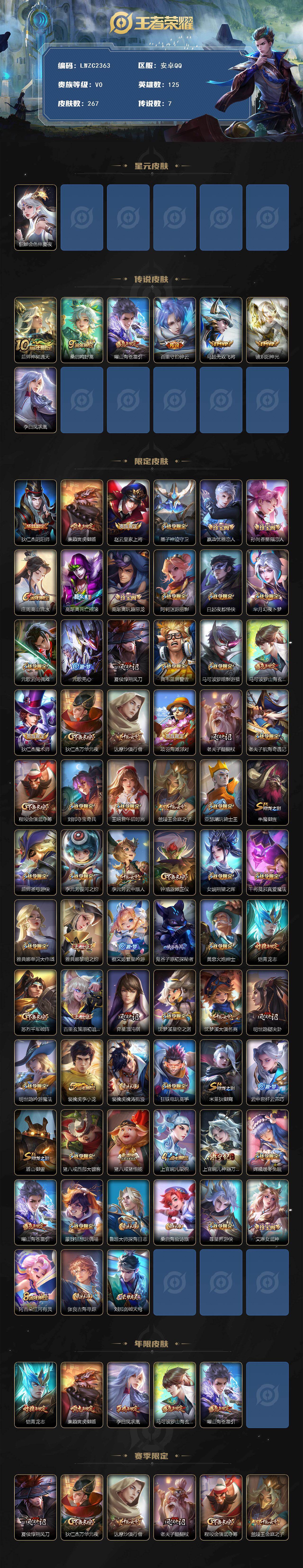 【特价急出/详情看图】安卓Q-V0-尊贵铂金III段位-125英雄-267皮肤-7传说-60史诗
