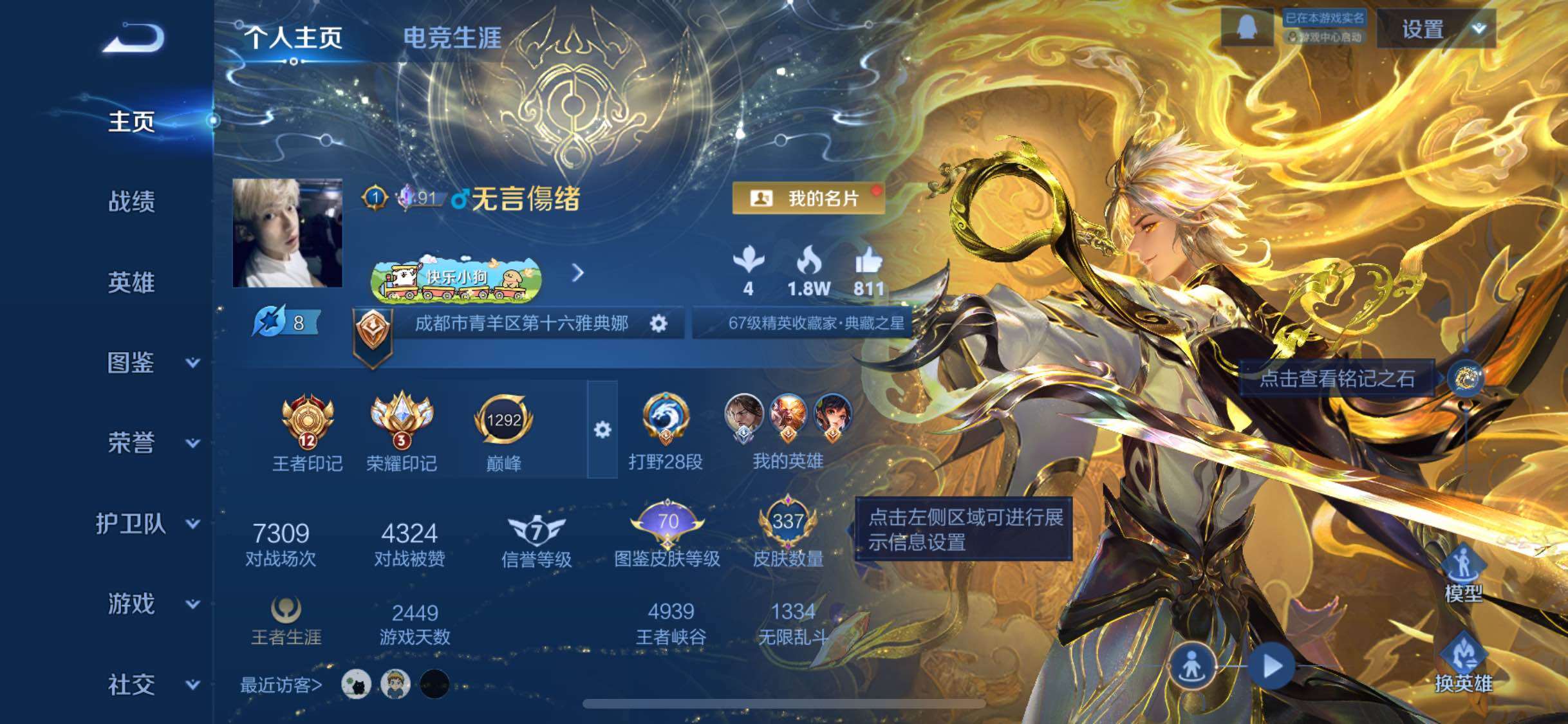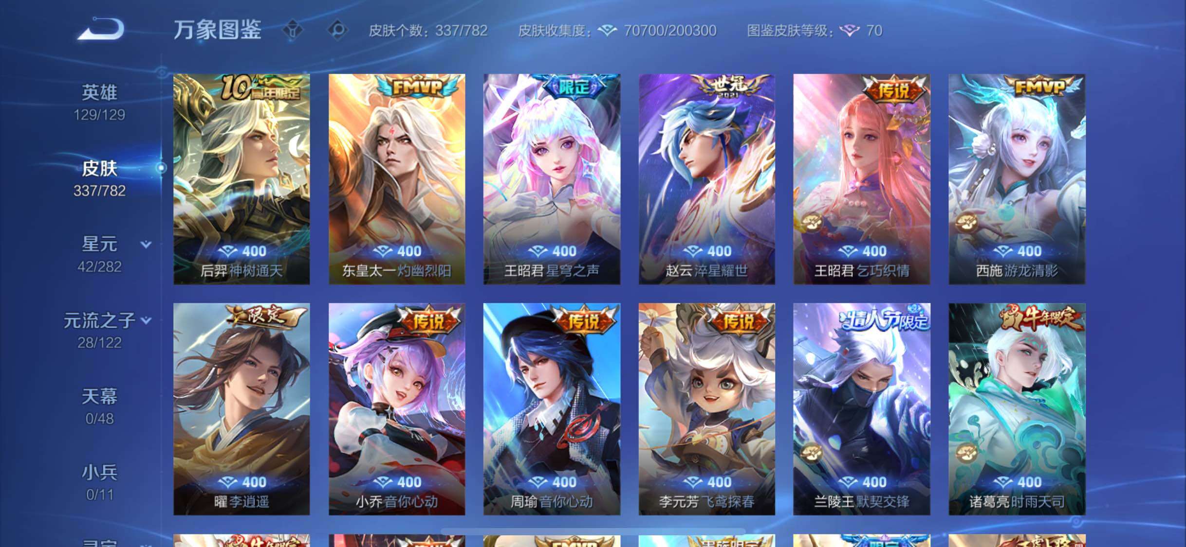 129英雄-337皮肤-12王者印记-280铭文-贵族积分11w