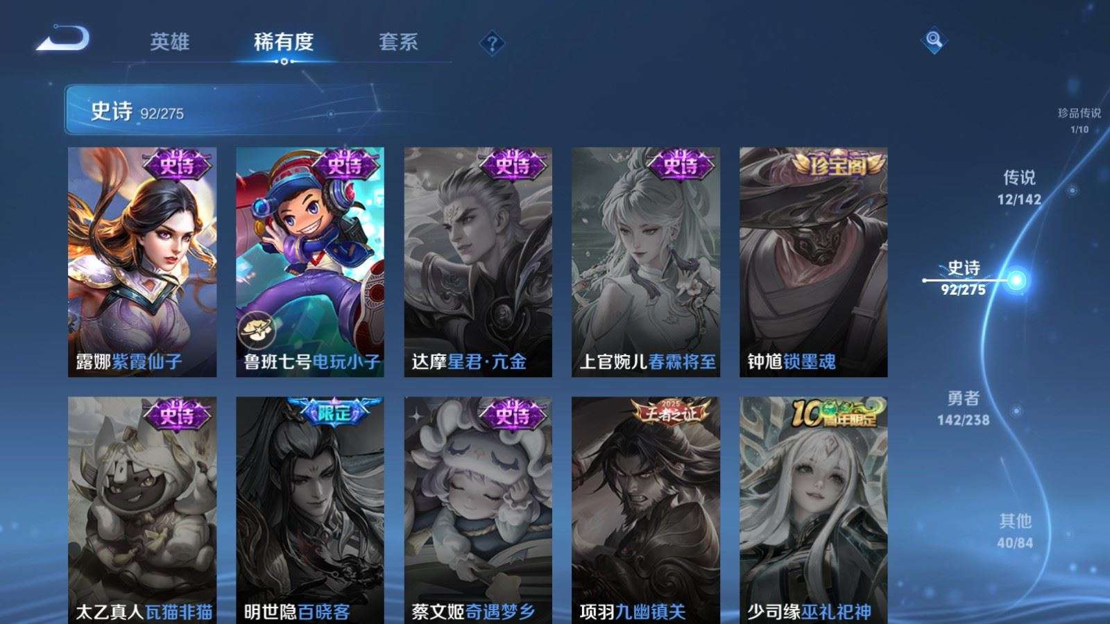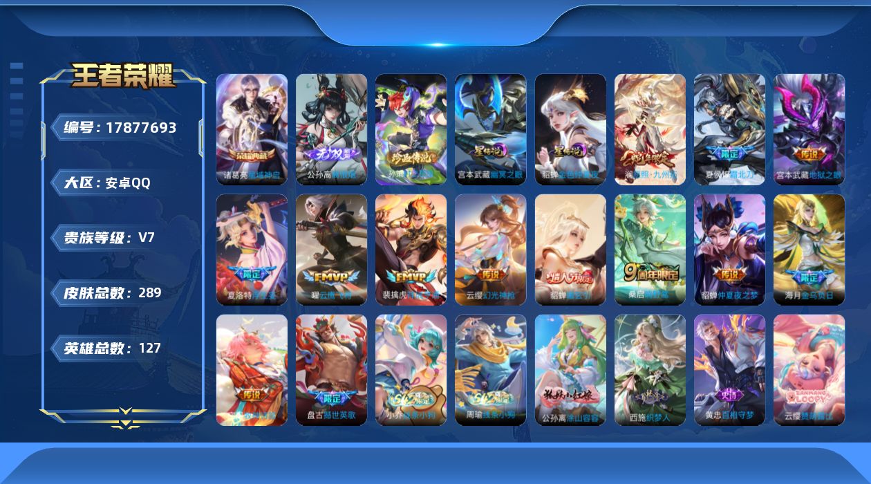 127英雄-289皮肤--V7-1典藏1无双1珍品传说12传说 2星传说 幽冥之眼 金色仲夏夜【全皮