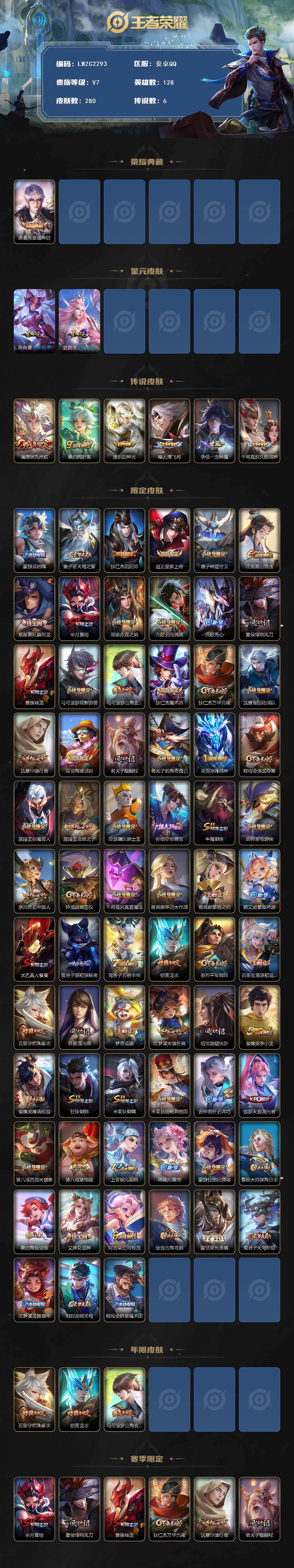 V7-至尊星耀III段位-128英雄-280皮肤-1典藏皮肤-2星元-6传说-81史诗