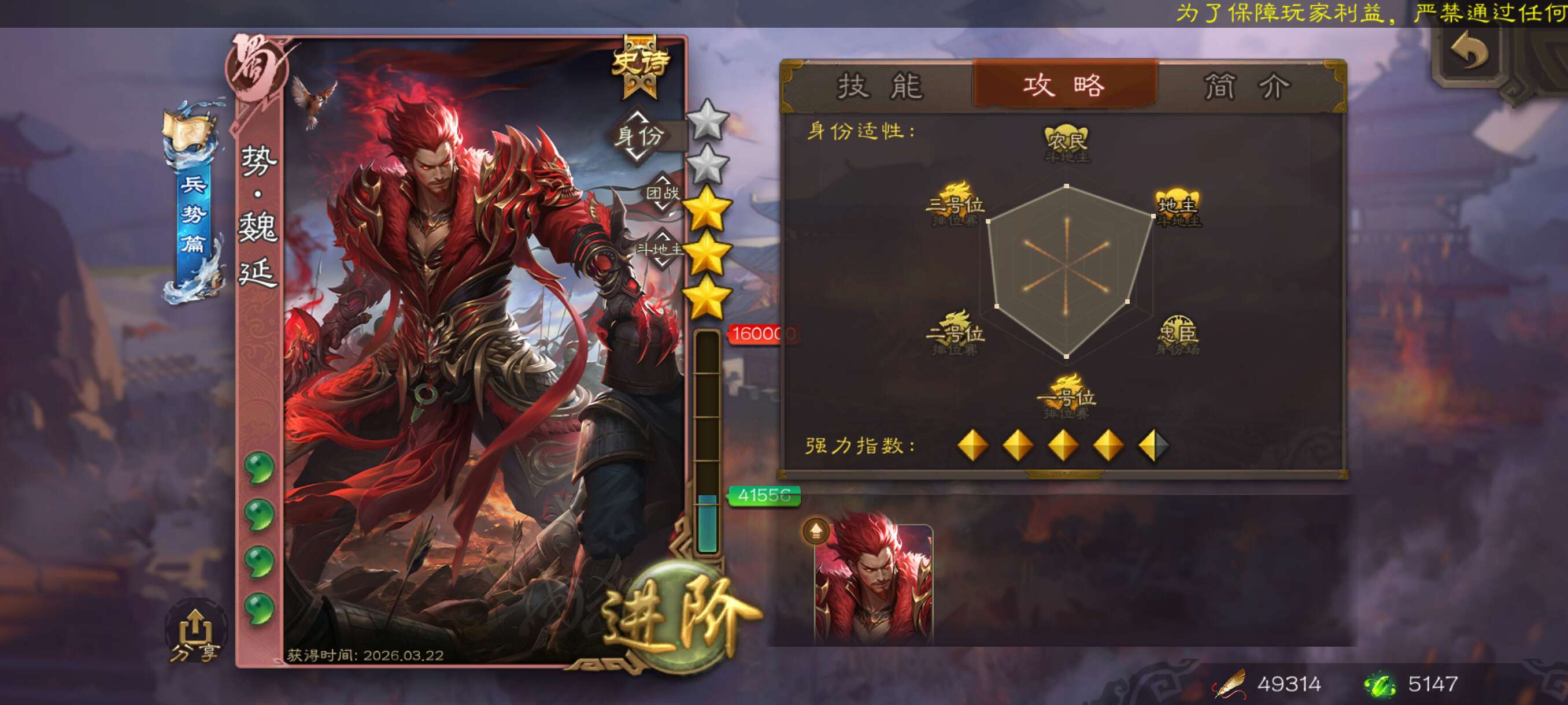 势魏延+界曹真超级士兵开局号!总将58,三卡材料充足,官服字母格式活绑