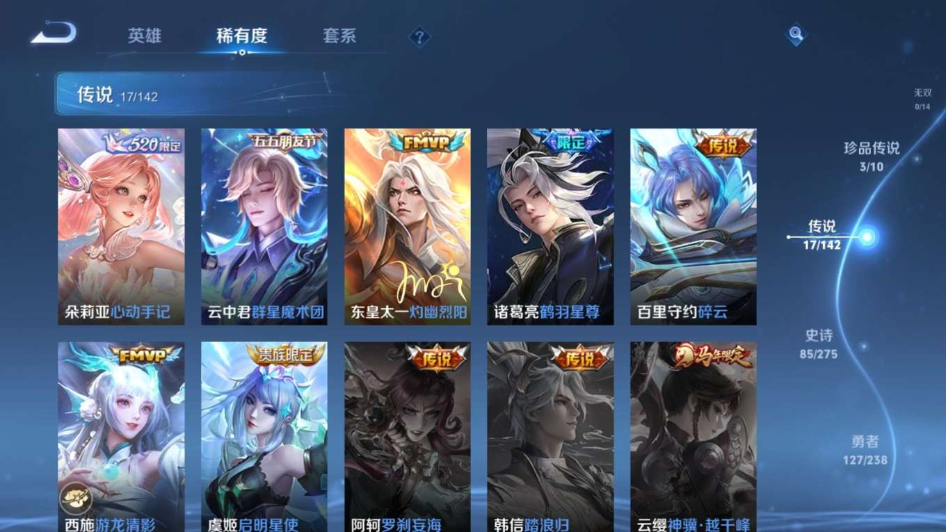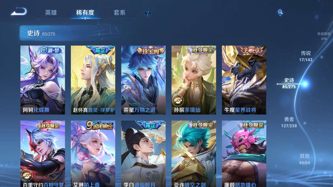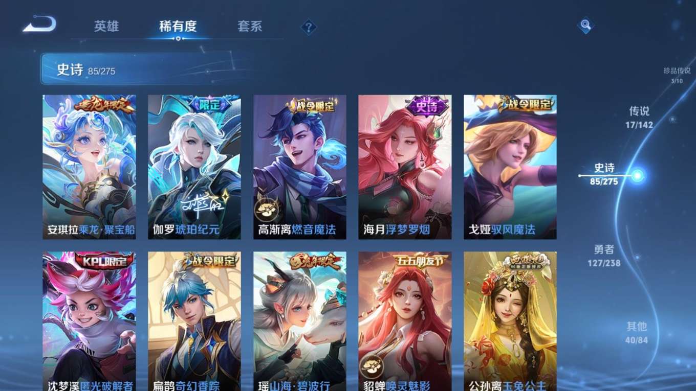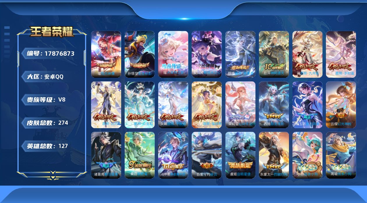 127英雄-274皮肤--V8-2典藏3珍品传说17传说 【全皮英雄】 影全皮 【典藏】 拾光映像