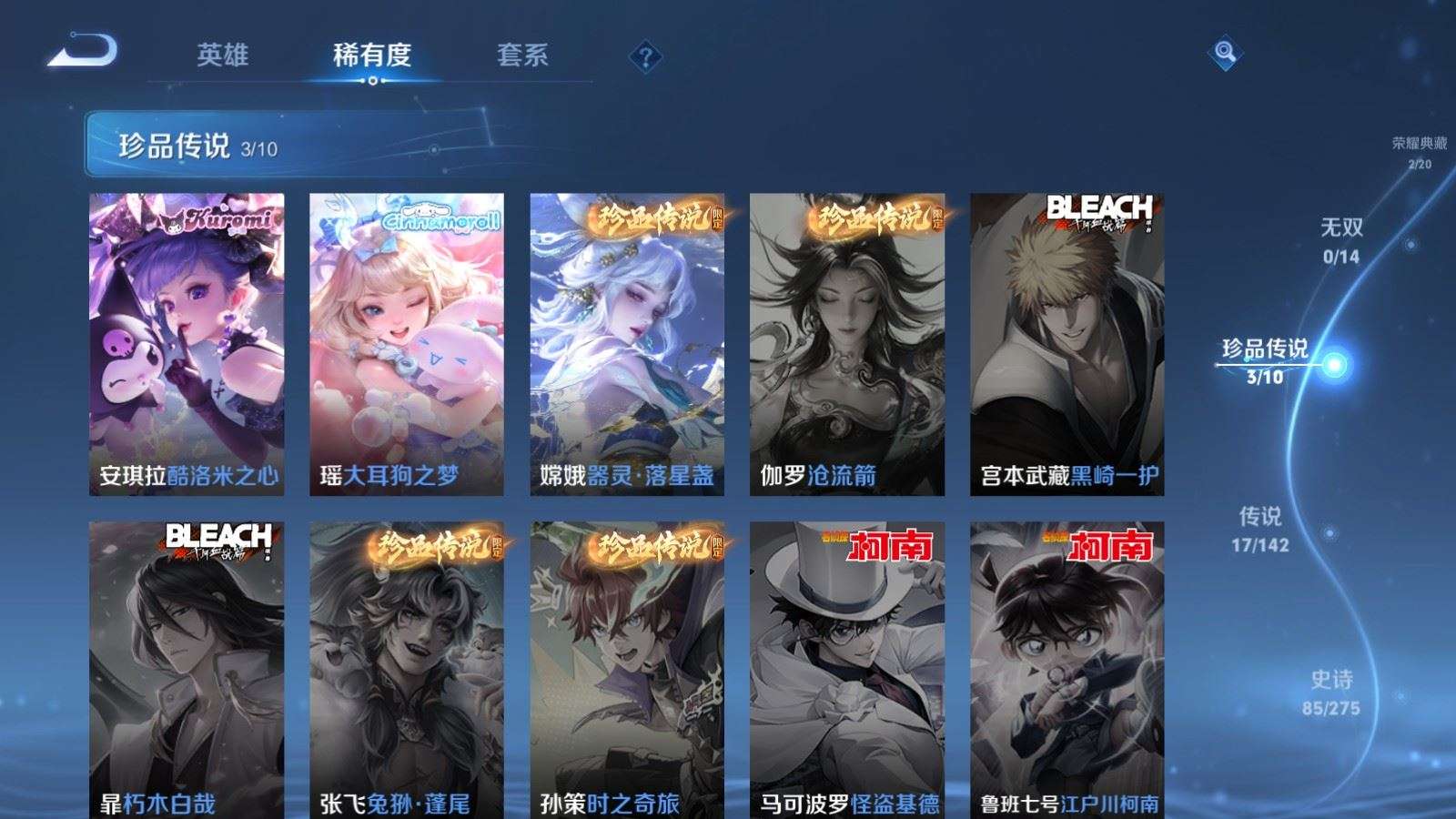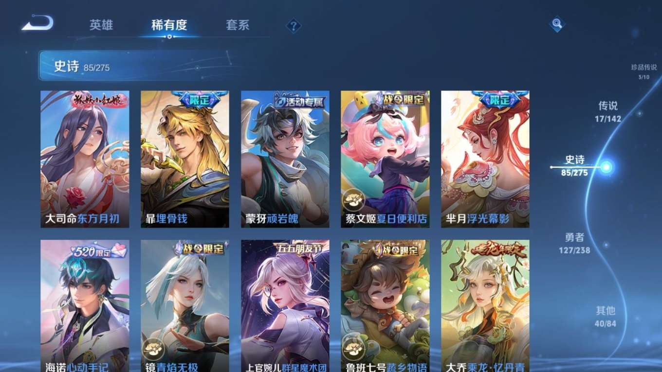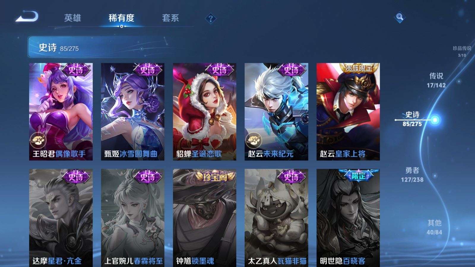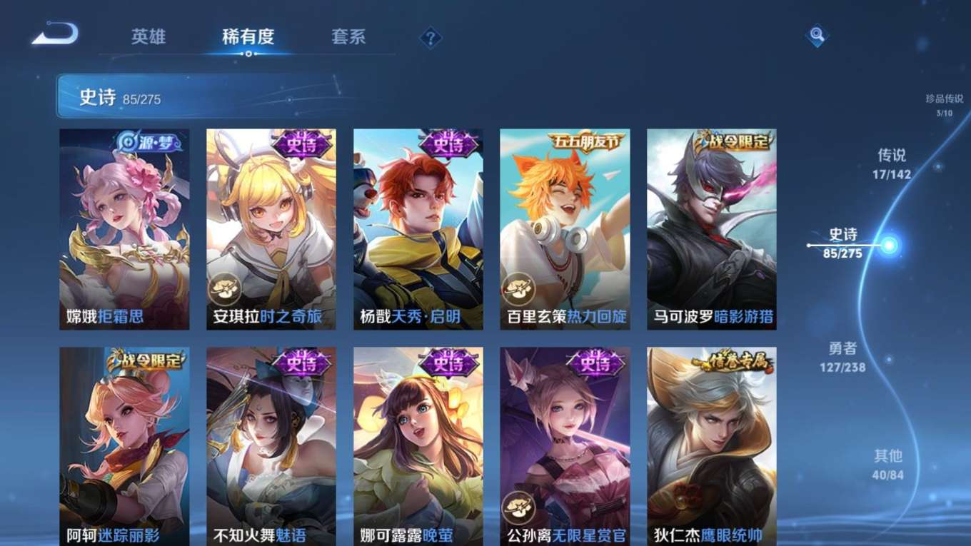 127英雄-274皮肤--V8-2典藏3珍品传说17传说 【全皮英雄】 影全皮 【典藏】 拾光映像