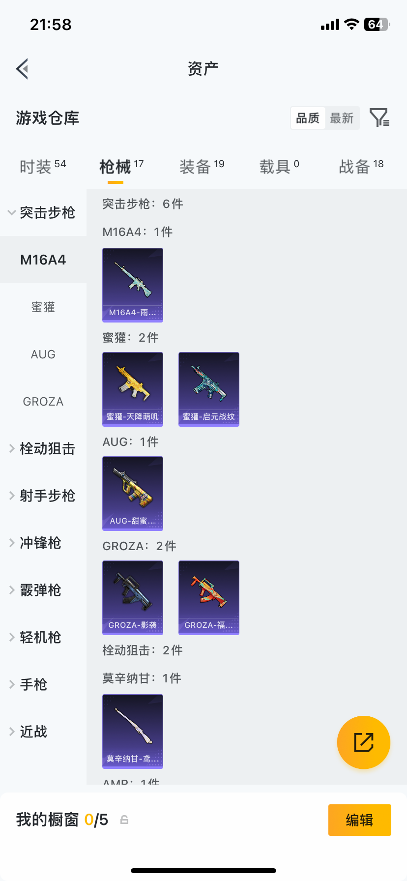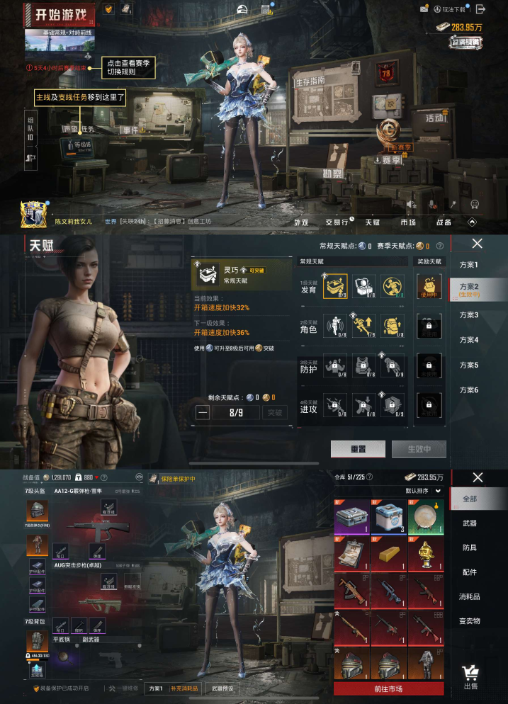-1粉装-2特效枪-地铁已开-4364热力值-1王牌印记-12套装-17枪皮【稀有武器皮肤】: GROZA-影袭 AUG-甜蜜菠萝 蜜獾-天降萌叽【其他套装】: 阳光火鸡 漫步者 街头潮人【优质降落伞】: 普通降落伞 白昼之火降落伞