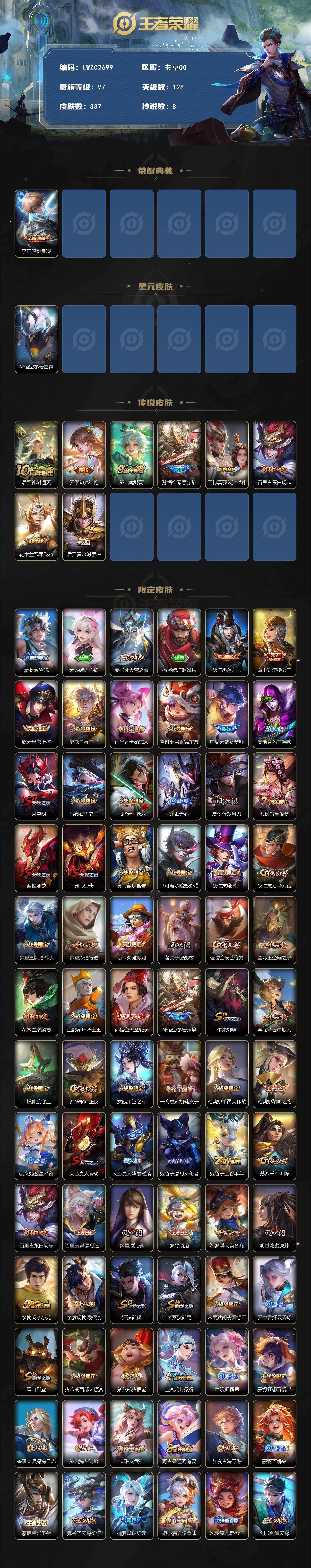 V7-最强王者段位-128英雄-337皮肤-1典藏皮肤-1星传说-8传说-90史诗
