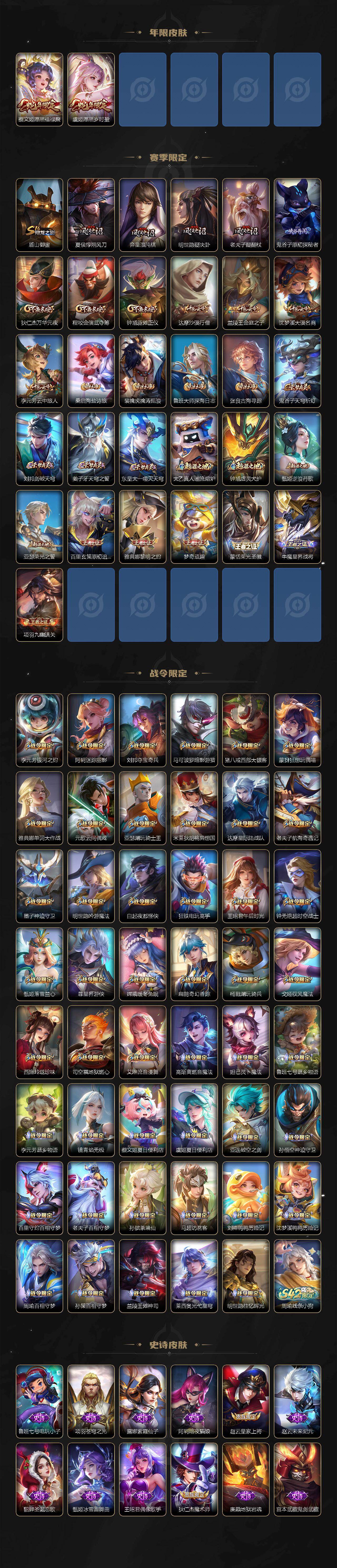 【英雄全皮】:刘禅全皮,达摩全皮,刘邦全皮,孙权全皮,阿古朵全皮,司空震全皮,莱西奥全皮,戈娅全皮,空空儿全皮,影全皮,少司缘全皮