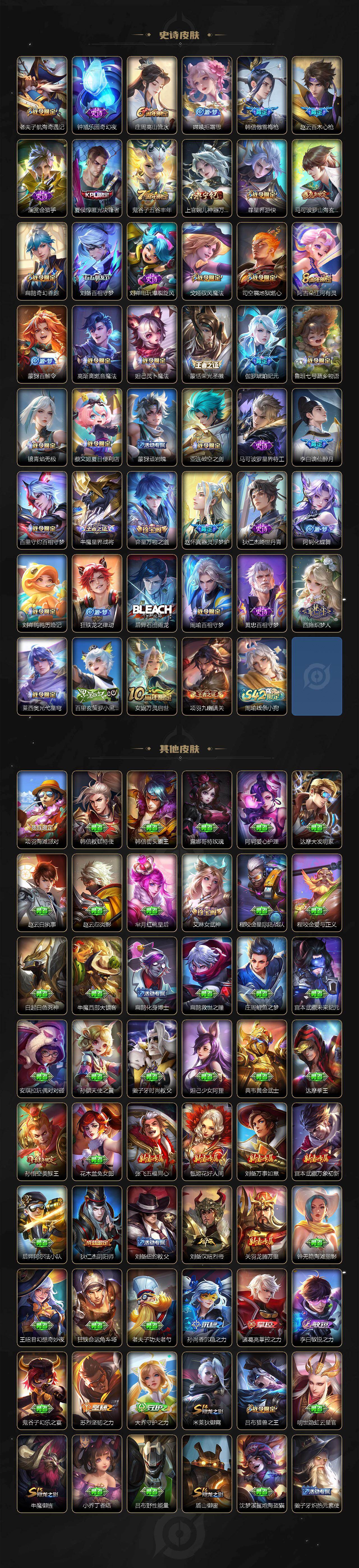 【英雄全皮】:刘禅全皮,孙权全皮,刘备全皮,孙策全皮,戈娅全皮,空空儿全皮,影全皮
