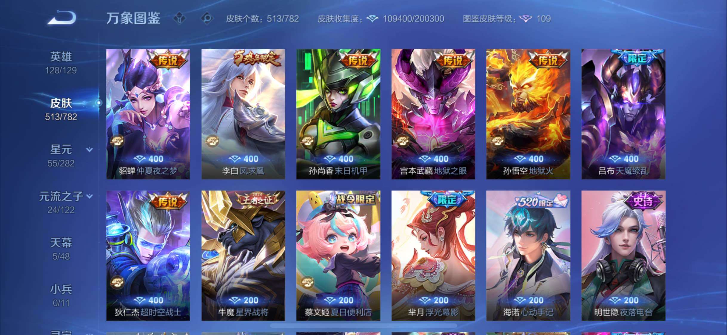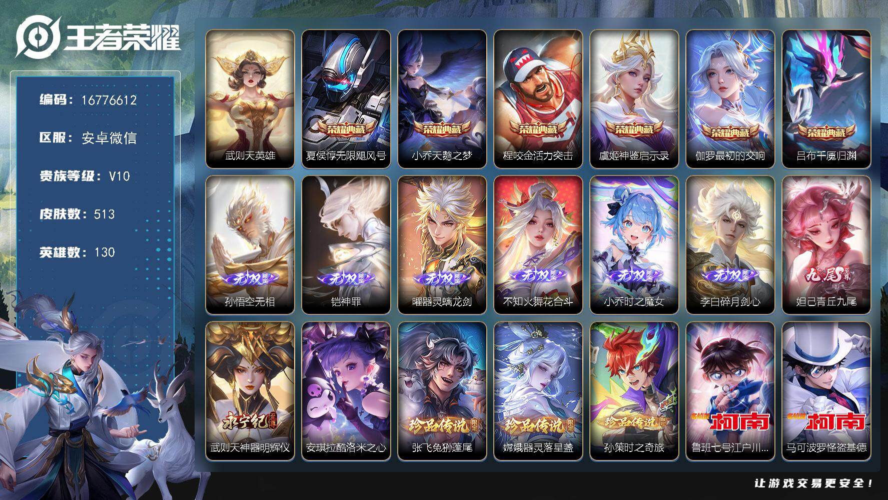128英雄-513皮肤-24王者印记-300铭文-贵族积分41w